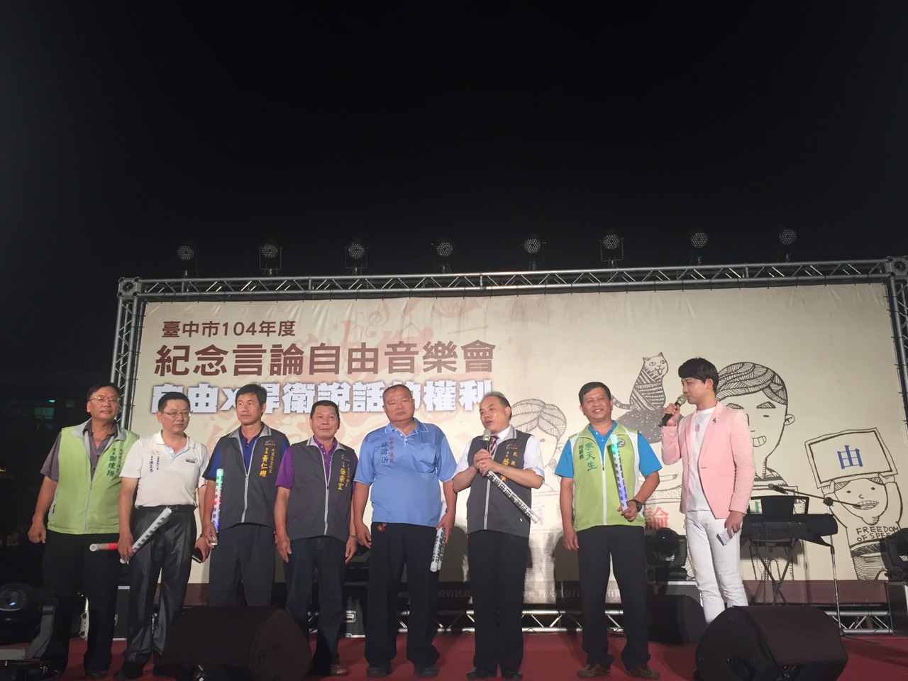 台中市政府民政局於今(3)日晚間在大里運動公園舉辦紀念言論自由音樂會,邀請翁立友等藝人,演唱曾被視為禁歌的舞「舞女」、「熱情的沙漠」、「墓仔埔也敢去」等膾炙人口的歌曲,副市長張光瑤也出席共襄盛舉,一同緬懷過去,遙想先賢爭取言論自由的艱辛與奮鬥。