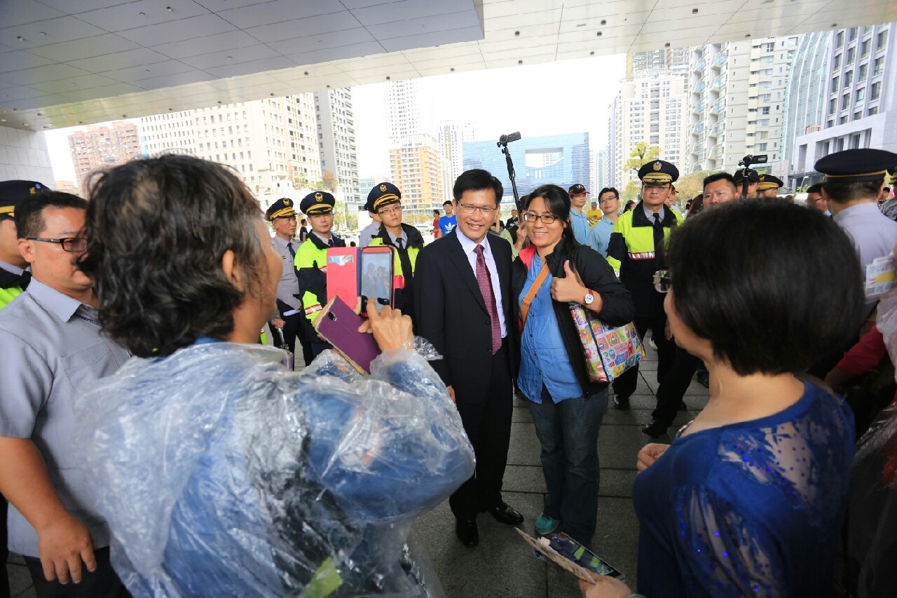 林市長表示,雖然早上下了一陣雨,但是大家熱情不減,仍然踴躍出席國慶升旗來祈求國運、市運、家運有更好的開始,而且有現場也有身心障礙的朋友搭乘社會局的復康巴士來到會場,精神更令人感佩。