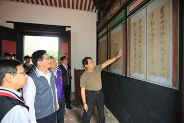 今日林市長在經發局長呂曜志、文化資產處長張佑創、神岡區長王基成、市議員張立傑、羅永珍等人陪同下,前往當地視察,也至筱雲山莊瞭解目前內部古蹟建築的修復及保存現況,對於門板彩繪、雕花、百年紅眠床的歷史與用途,他都相當關心。