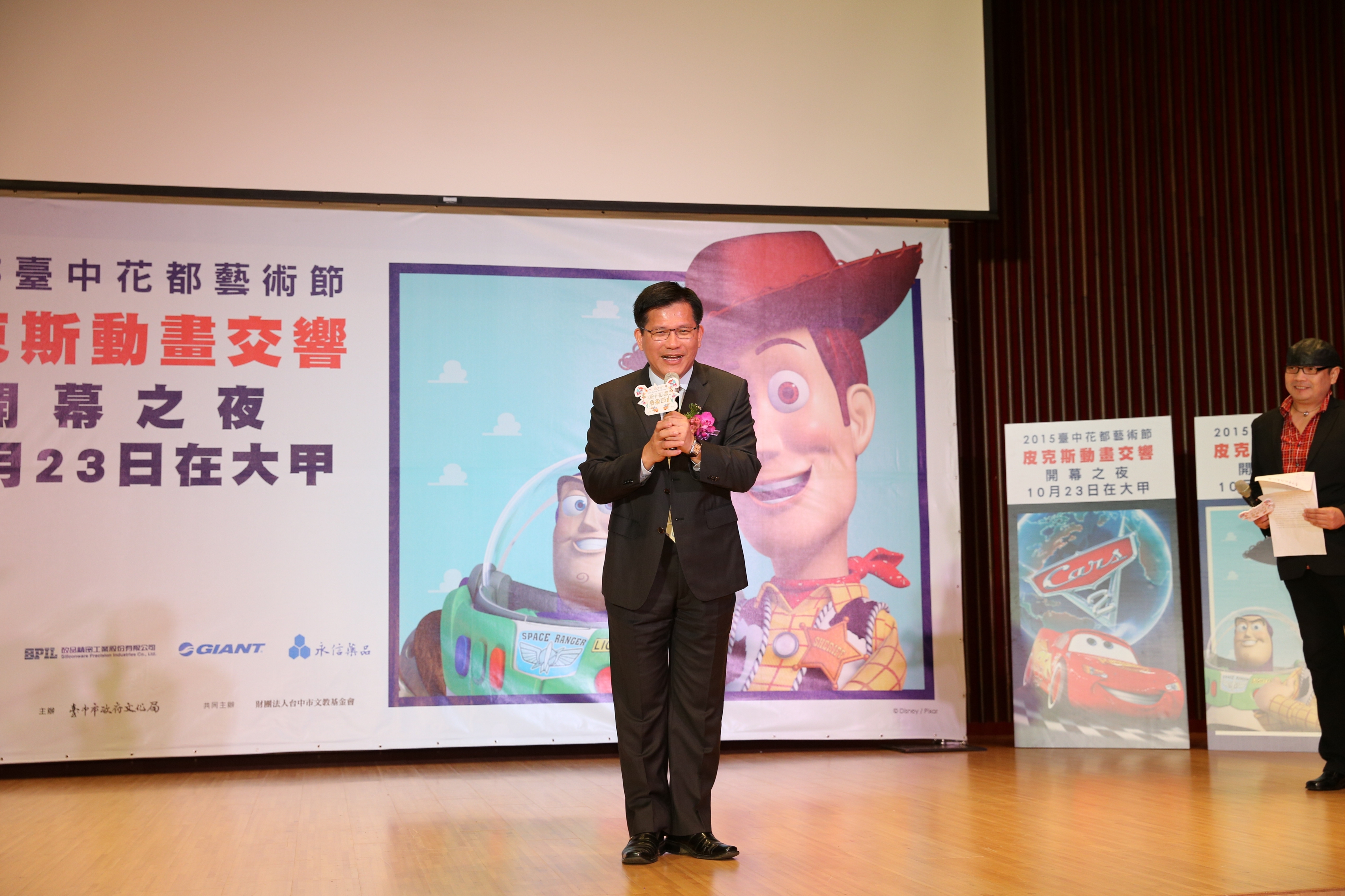 倒數10天,2015台中花都藝術節23日將在大甲體育場隆重開幕,由深受大人小孩喜愛的「皮克斯動畫交響音樂會」擔任開幕演出。市長林佳龍表示,「第1場活動就要一砲而紅!」開幕選在大甲,閉幕選在太平,目的是希望縮短城鄉差距,促進地方均衡發展,希望藝文活動深入台中各個角落。