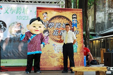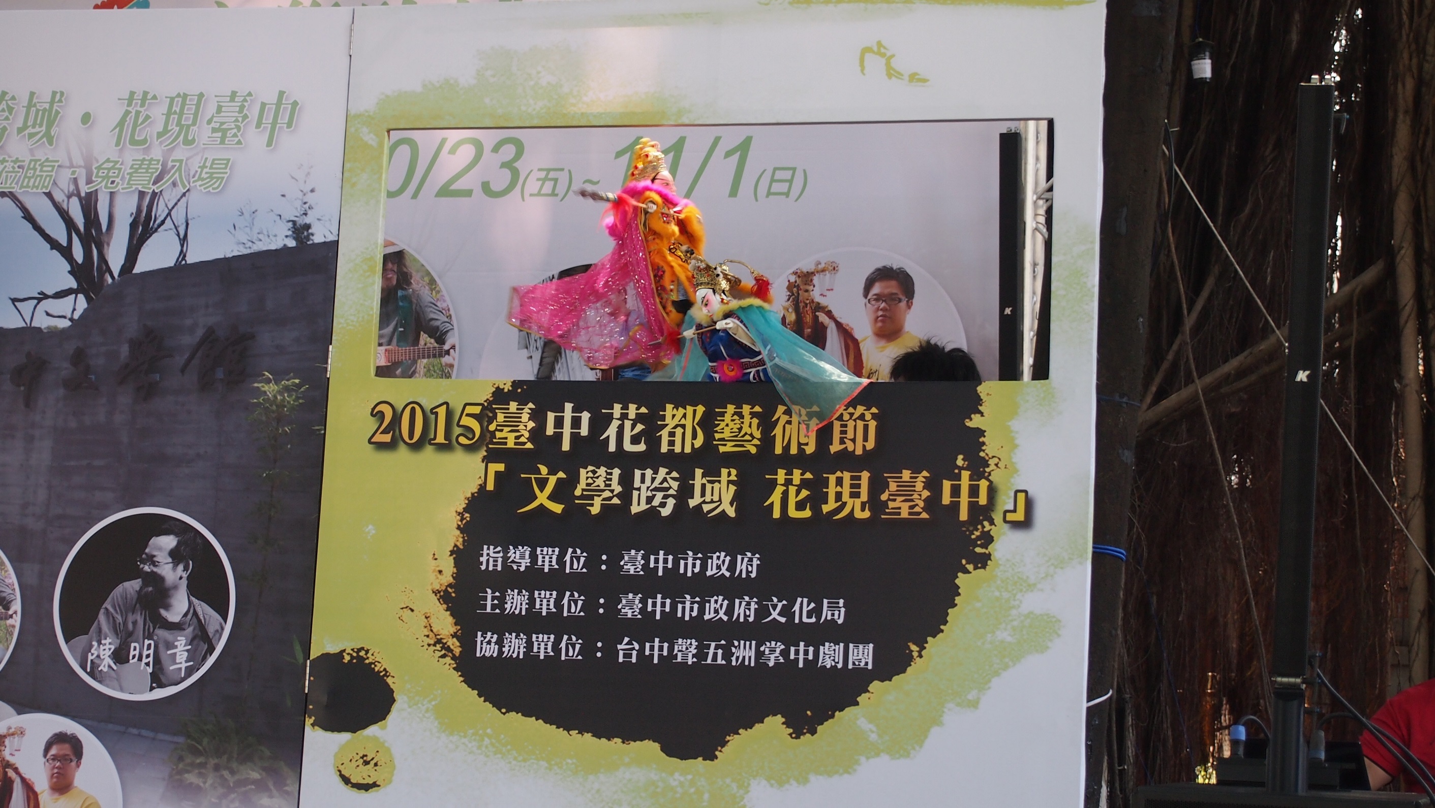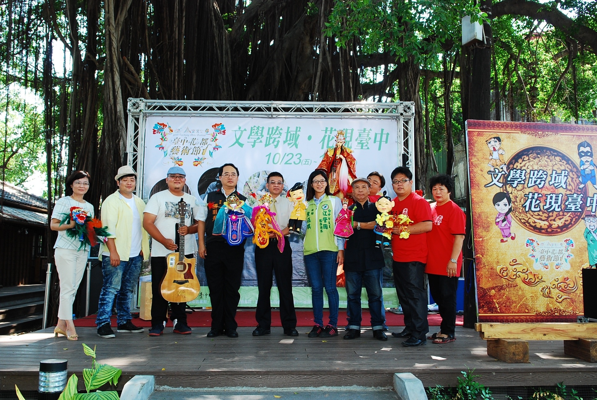 文化局今(14)日上午在台中文學公園榕樹下木棧道前舉辦「文學跨域‧花現台中」活動記者會,由台中聲五洲掌中劇團帶來精彩的開場表演,接著由迎光社Shining Band以「重臨柳川」一詩(出自詩人路寒袖)融入音樂、文學、創作演出,讓大家體驗傳統與現代表演不同的藝文感受。