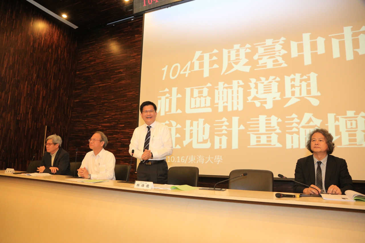 為讓今年參與的社區夥伴更了解計畫內容以及台中的都市發展方向,都發局今(16)日在東海大學舉辦社區規劃培力論壇,邀請社區夥伴與學界、業界代表互動交流。市長林佳龍表示,雖然今天市議會開議,他也一定要抽空與社區夥伴們交流,分享他的想法。