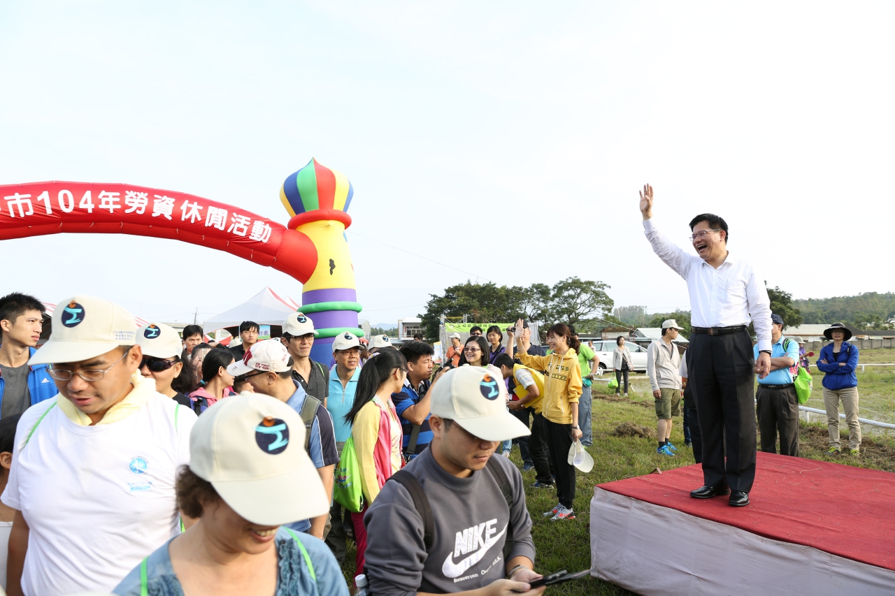 林市長表示,市府舉行勞工休閒活動,一方面是為了感謝勞工終年辛勤工作,也鼓勵勞工朋友多運動,促進親子同樂;活動中也融入職業安全及勞工權益宣導,希望讓勞工享受健康歡樂的假期之餘,也能促使保障勞工權益。