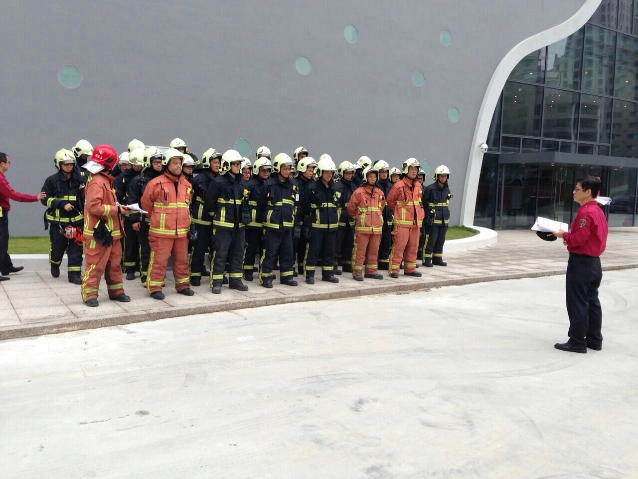蕭局長表示,此次演練繼市府9月份舉辦高層建築物搶救演練採用事故現場指揮與控制作業CCIO(Command and Control of Incident Operations)模式的延續,將之運用在國家歌劇院之事故應變指揮上,盼救災人員熟悉劇場內空間配置及消防安全設備,提昇救災效率。(10/21*8)*消防局