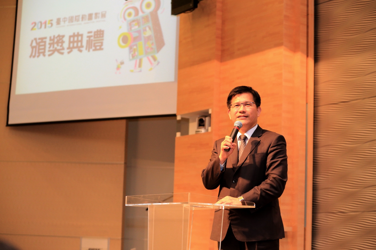 台中市政府新聞局舉行的2015台中國際動畫影展今日閉幕,台中市長林佳龍、新聞局長卓冠廷、法國在台協會紀博偉、國美館館長蕭中煌均出席盛會,國內外知名導演王小棣、Chris Robinson、Christian Desmares、安在勛、袁建滔代表頒獎,揭曉各項大獎得主。