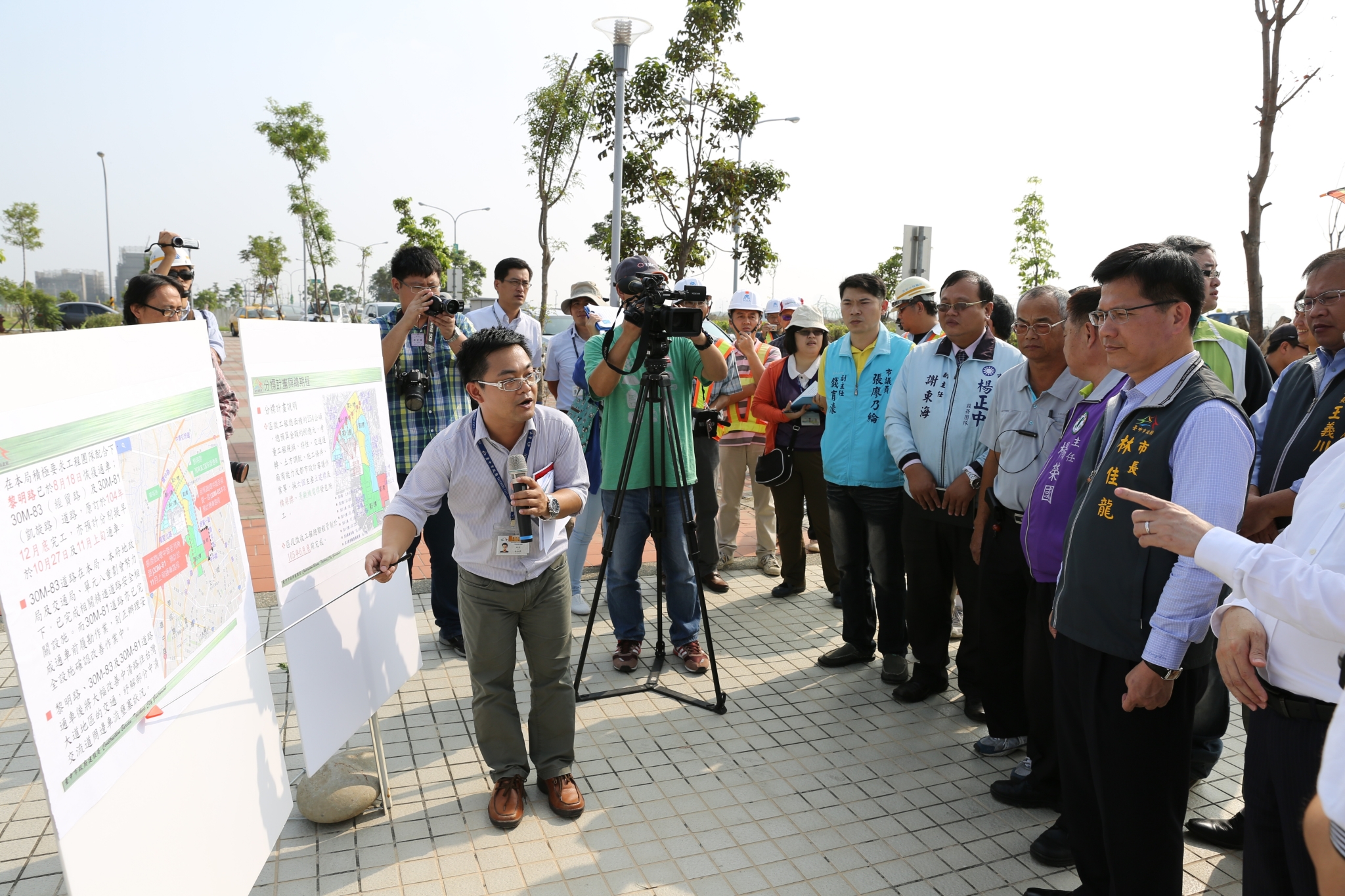 「我來驗收4個月前對地方的承諾!」林市長表示,4個月前視察水湳轉運站時,地方民眾反應盼儘快打通經貿路,紓解中清路與環中路口壅塞問題,他請建設局、交通局加速辦理,原來預定12月通車30米寬經貿路提早通車,感謝市府同仁效率,凱旋路也會提早至11月初完工。