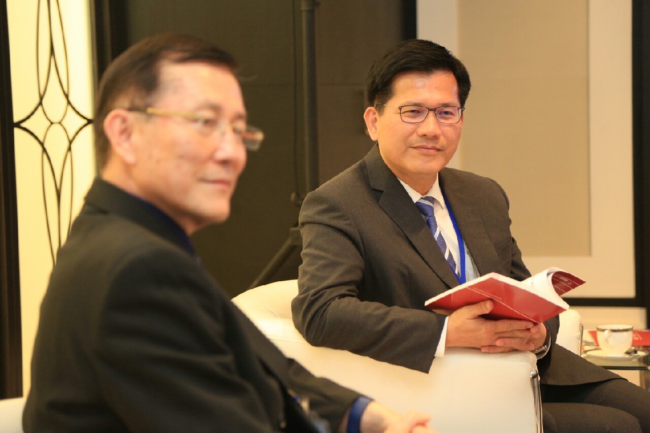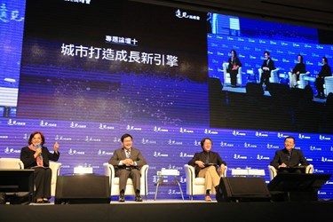 林市長與亞洲大學講座教授劉育東、零點研究諮詢集團高級副總裁馮晞等人,受邀參加「打造城市新引擎」專題論壇,由《遠見雜誌》副社長兼總編輯楊瑪利主持;他以「中部崛起‧翻轉台中─打造創新智慧大台中」為題,分享台中經驗。