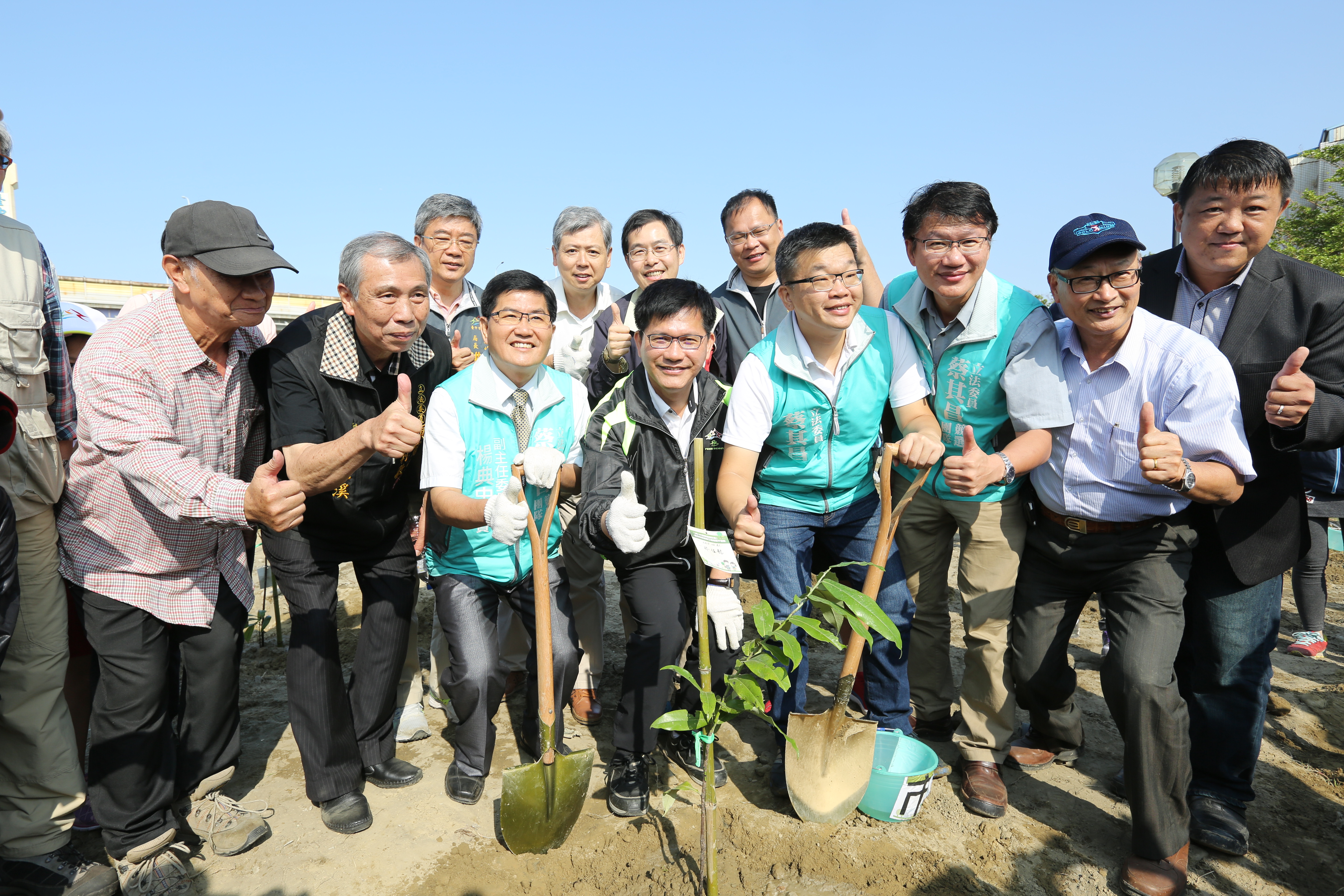 為解決都市擴張造成的都市淹水及熱島效應問題,台中市政府預計8年內種100萬棵樹;今日市府建設局在梧棲區台灣大道八段與台61線中正國小旁的綠地舉辦植樹活動,包括林市長、建設局長黃玉霖、交通局長王義川、都發局長王俊傑、環保局長洪正中、立法委員蔡其昌、市議員王立任、楊典忠、鄉土詩人吳晟,均共襄盛舉。