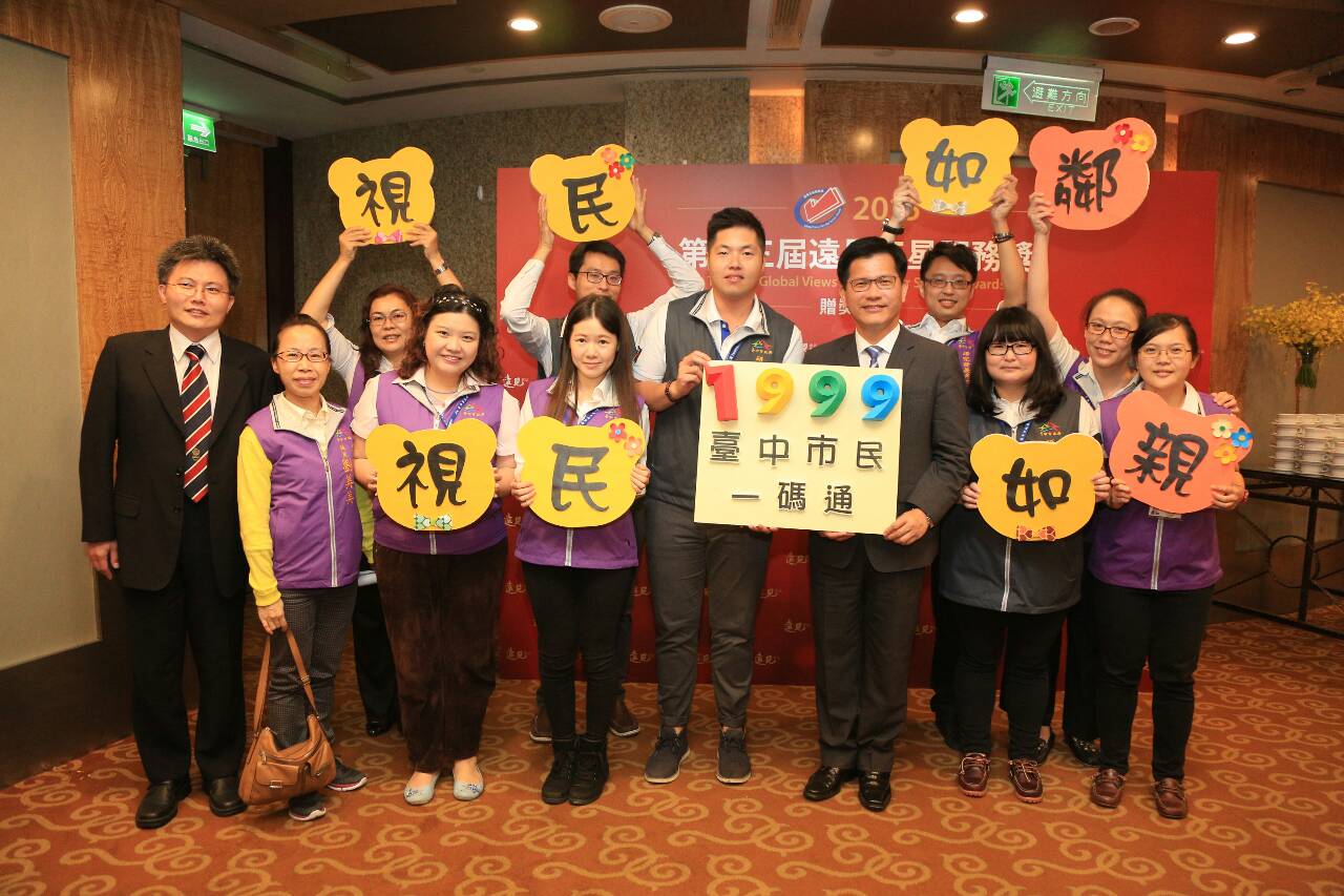 台中市政府獲得「1999便民專線類」冠軍,市長林佳龍表示,很高興台中市政府1999專線便民服務得到遠見服務獎的肯定,感謝第一線的話務人員與市府團隊。市府相當重視1999便民專線功能,這是市府的雷達得以偵測民意,瞭解市民對於市府的滿意狀況。他也期待,第一線的話務人員態度親切外,更能有效解決市民反映的問題。