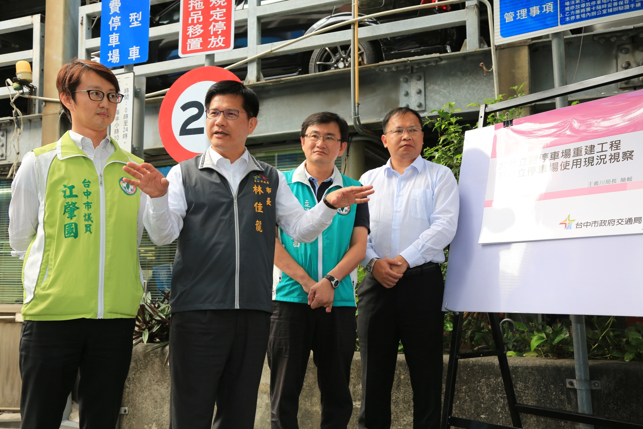 林市長表示,台中舊市區缺乏大眾交通系統,民眾只好以汽機車代步,加上傳統市場周邊商業活動頻繁、停車空間不足,導致交通阻塞與空氣污染的惡性循環;如今行動市府展現效率,在民意代表的協助下,優先針對向上市場及第五市場,以出資自建停車場、撥用國有財產署土地整理等方式,創造停車空間。