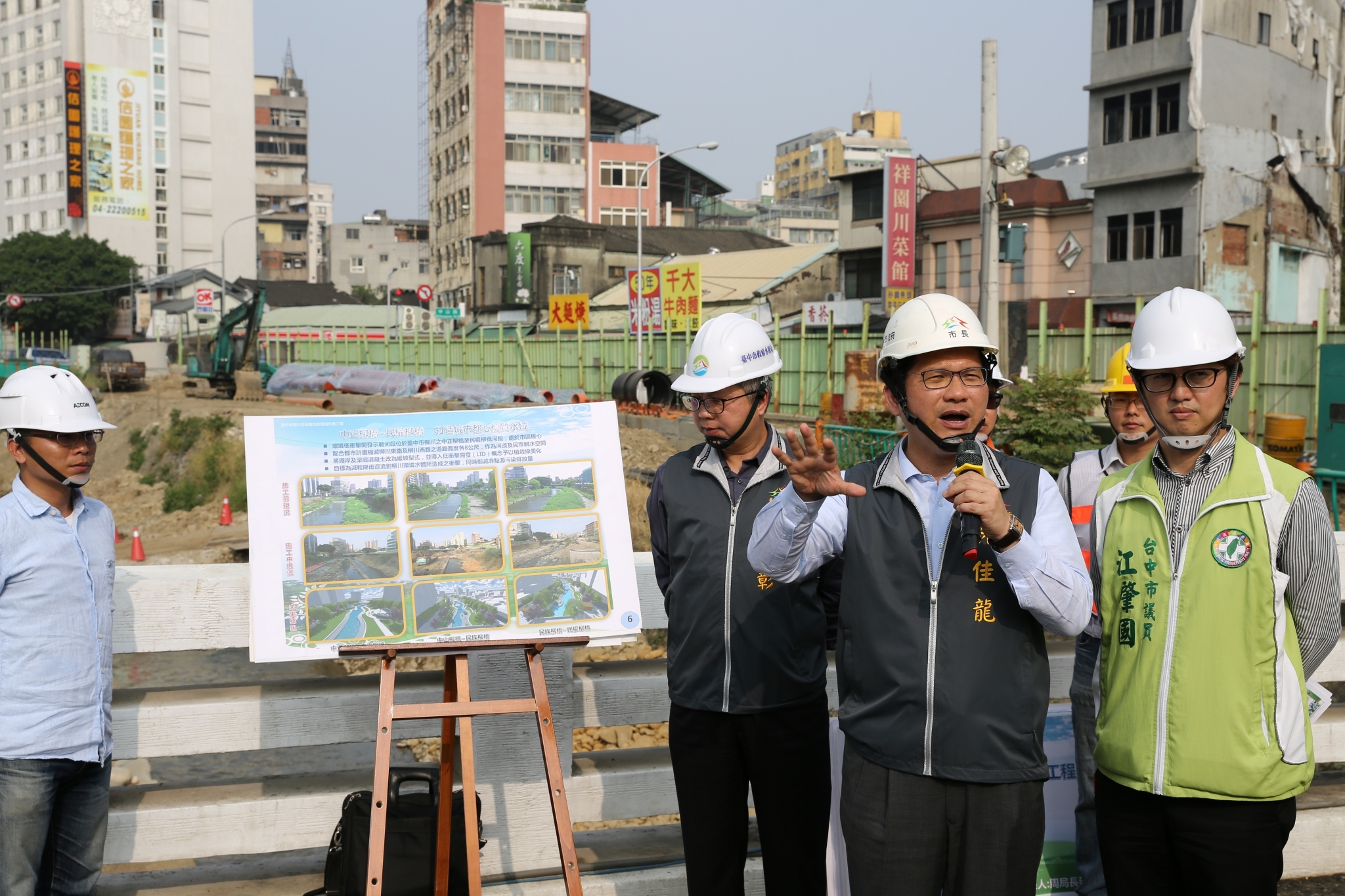 林市長今(6)日下午前往視察柳川污染整治及環境改善工程情況,由水利局長周廷彰簡報「柳川污染整治及環境改造工程」一至三期的規劃情形及工程進度,同時聽取地方居民的意見;立委黃國書、市議員江肇國、中區區長黃至民、西區區長饒世文及多位在地里長也前往現場關心。