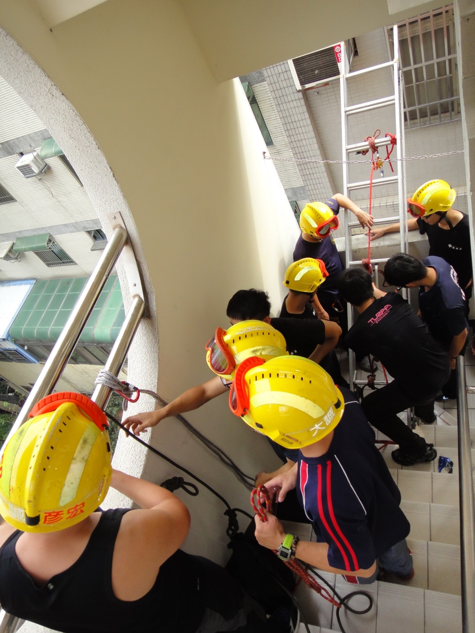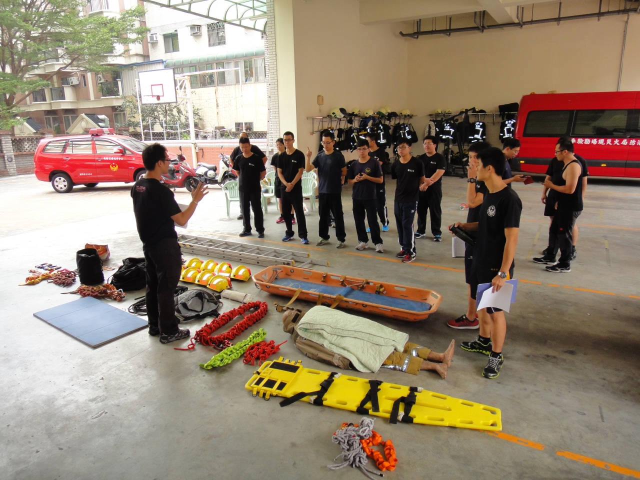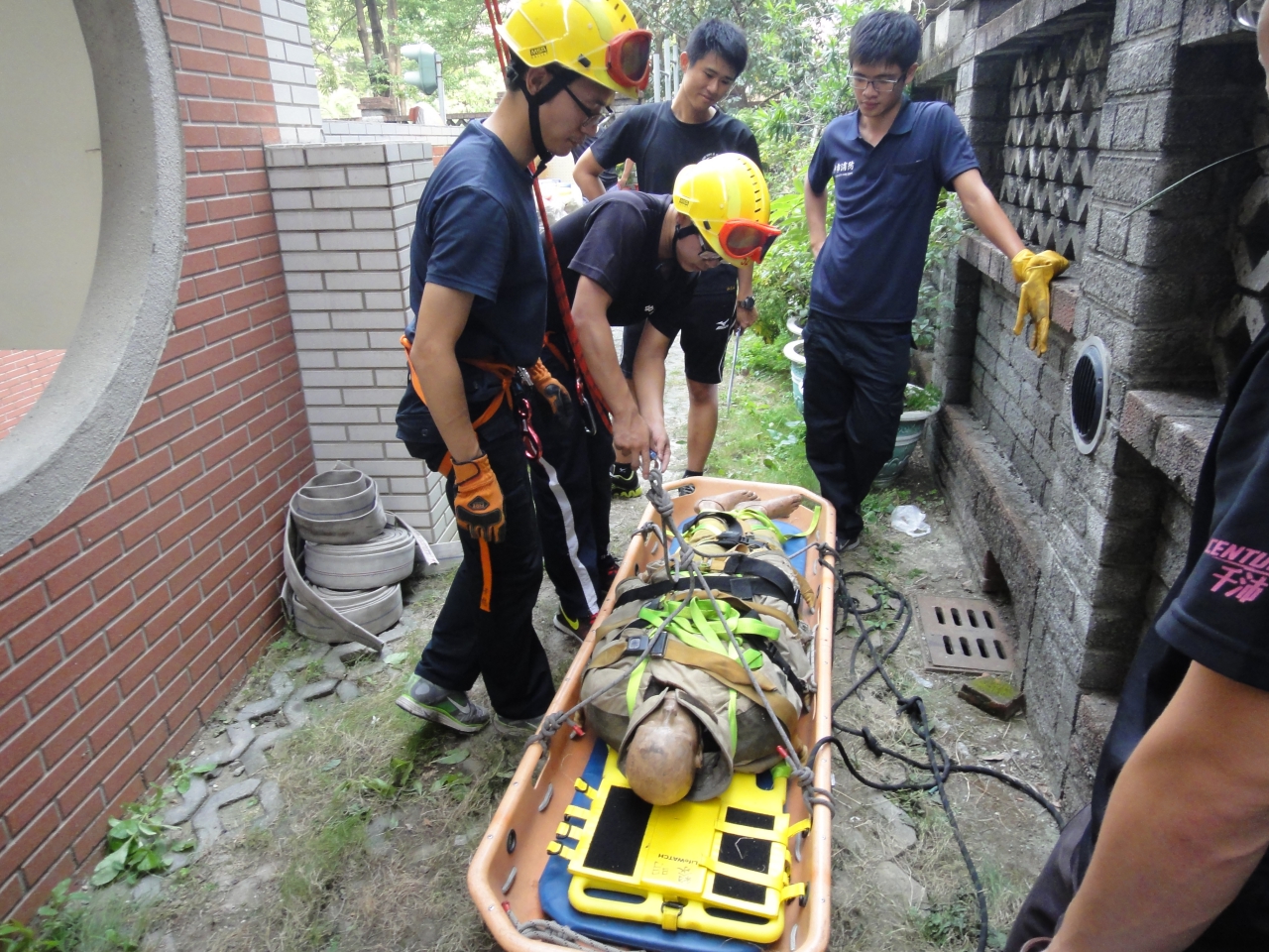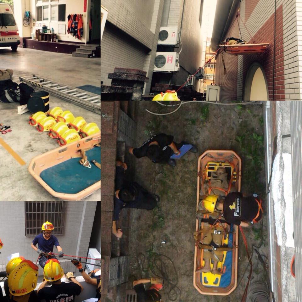消防局因為地區特性,模擬民眾跳樓自殺、工地墜落等訓練情,實施3000公尺跑步、著裝負重、單槓、折返跑、伏地挺身、仰臥起坐、舉重等七項體能測驗,演練情境除了考量各分隊可供調度之人力及器材進行作業設定外,並透過小組討論,依訓練場地地形地物做固定點架設、人員確保、人員下降及低所救出的技能。