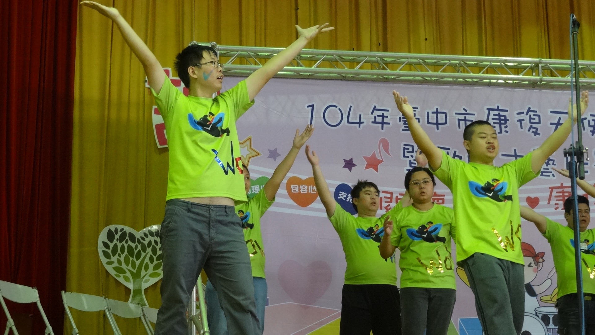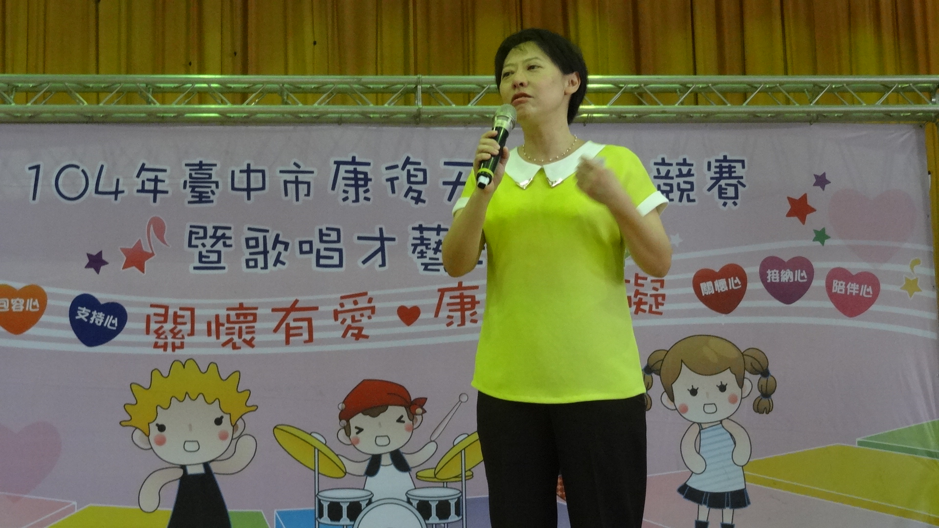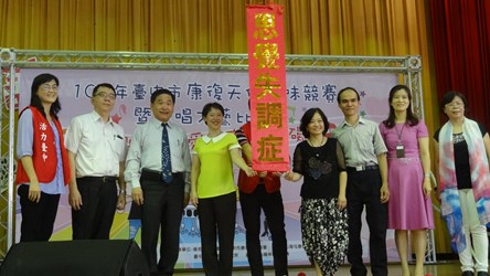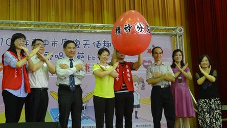 由台中市政府衛生局於西區忠明國小舉辦的「康復天使趣味競賽暨歌唱才藝比賽」,今日邀請500位身心復健病友、家屬及復健機構一同參加。市長夫人廖婉如、中山醫學大學精神科教授賴德仁、社團法人台中市康復之友協會理事長張珠莉、台中市山海屯生命線協會理事長張惟創及本堂診所院長林本堂等人也一同出席同樂。