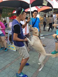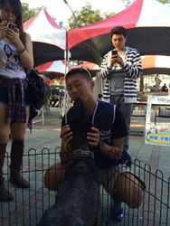 曾經目睹狗狗被主人遺棄的過程、在臉書寫下上千感人文字的超馬好手陳彥博今日出現在會場,受到民眾矚目。