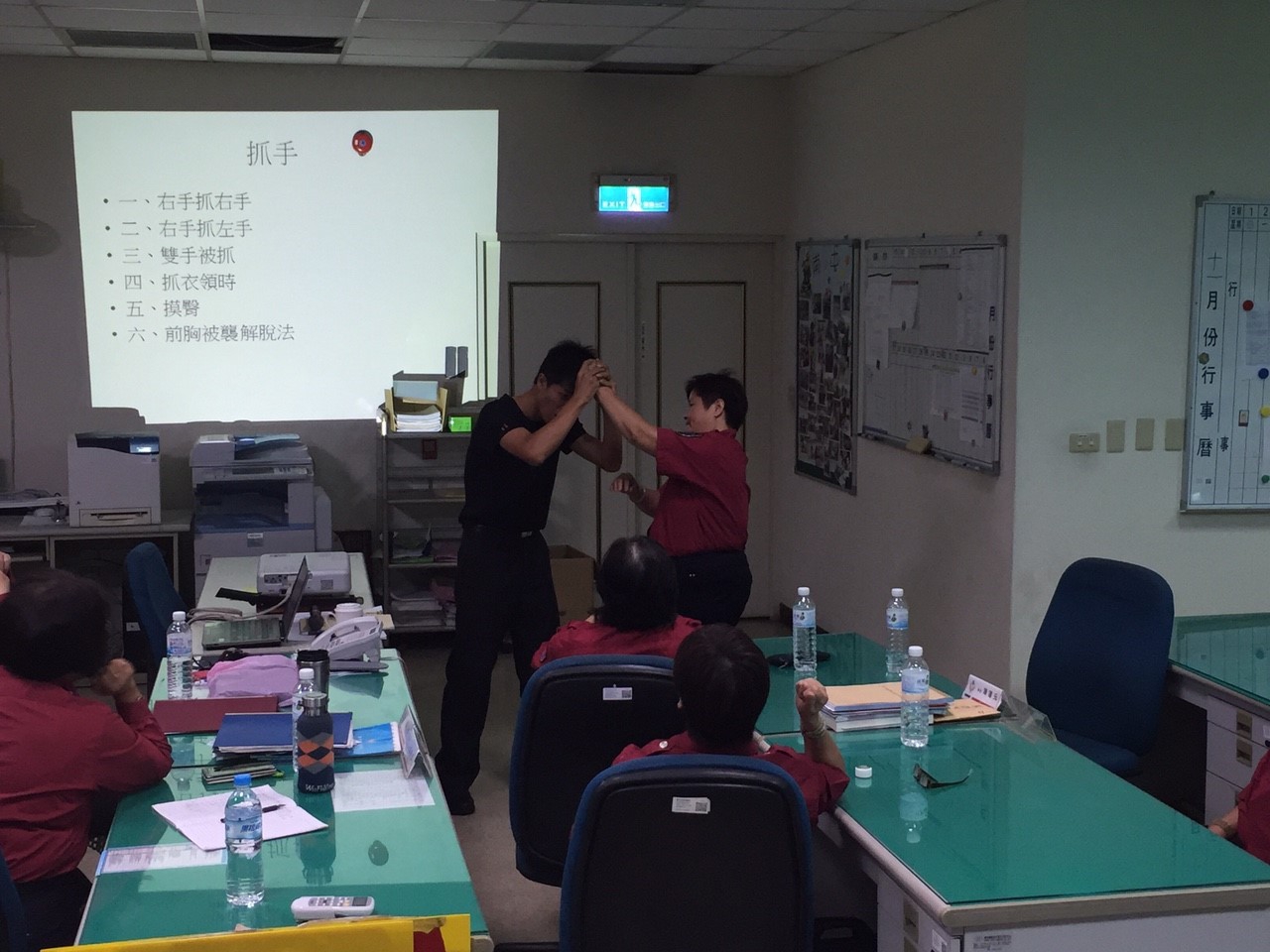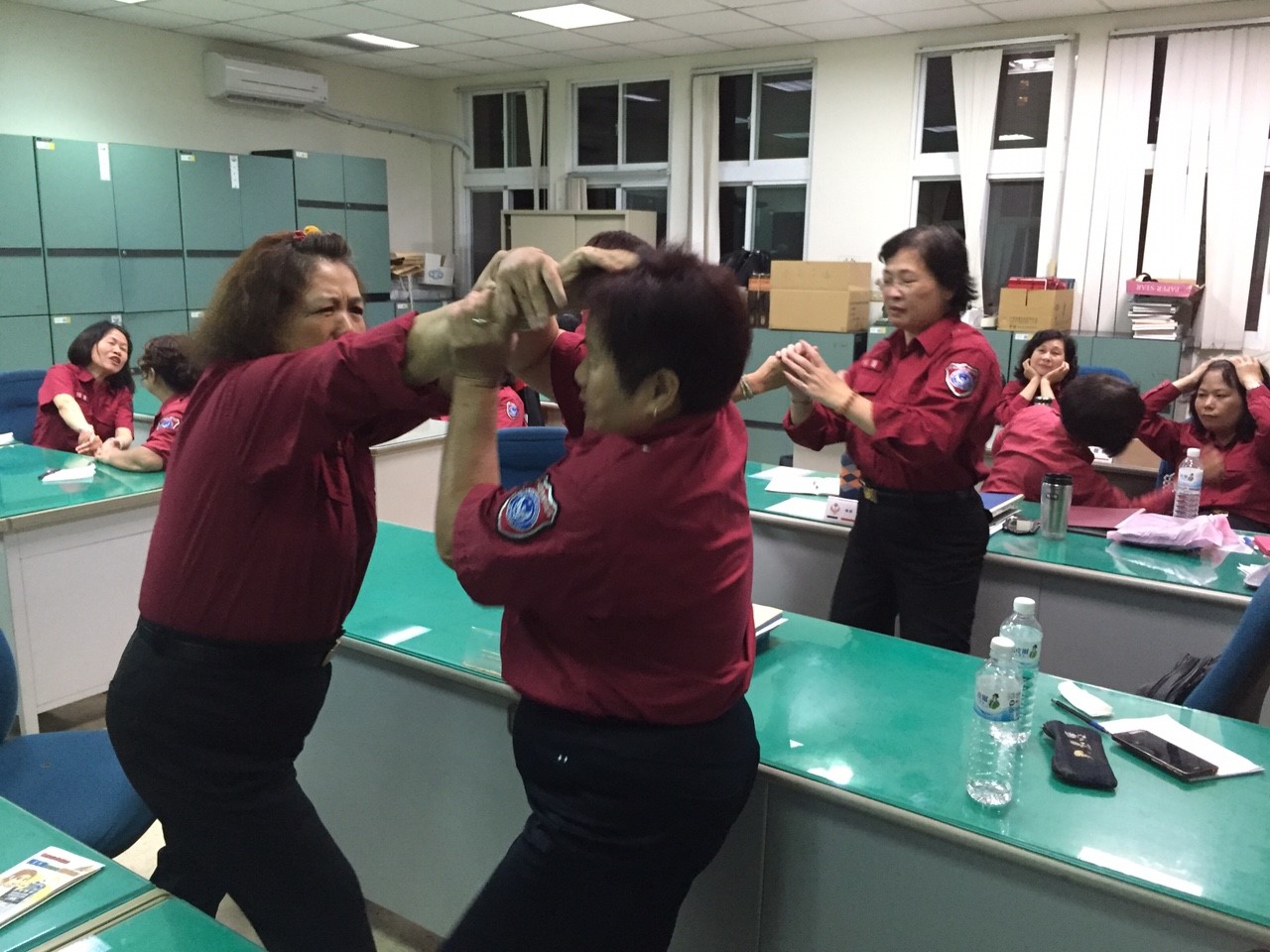 這場座談會除與女性同仁加強生活溝通、提供協助與解決問題管道外,也由南屯分隊同仁講授基本防身術及實際操作,教導大家女子防身術。
