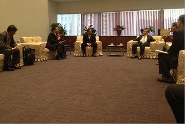 張副市長在台中市工商發展投資策進會總幹事黃望修、市府經發局專委江振瑋等人的陪同下會見日本東廣島市長藏田義雄一行人,雙方相談甚歡,氣氛愉快。