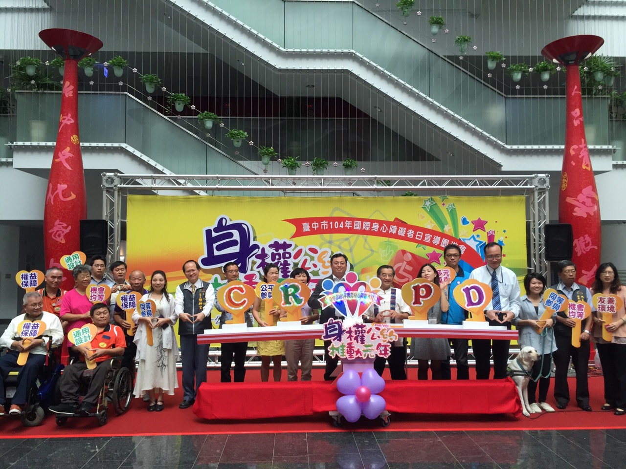 市府社會局今(20)日舉辦宣傳記者會,由身障朋友表演「輪椅舞」拉開序幕;副秘書長郭坤明、社會局、都市發展局、建設局及交通局代表手持代表「身心障礙者權利公約」的C、R、P、D字母標語,放在大型蹺蹺板一端;身心障礙團體代表則手持「公平參與、機會均等、權益保障」標語置於另一端,原本不平衡的蹺蹺板因各方努力得到平衡,象徵市府與身心障礙團體積極推動、落實身心障礙者權利公約的理念,也希望透過活動喚醒大眾正視身心障礙者各項權益。