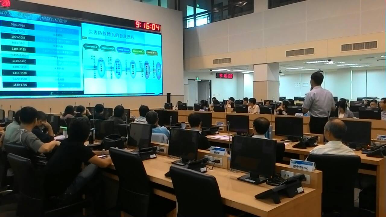 消防局表示,中市率先採用電腦模擬災變情境處置演練,各區由區長、課長及各業務承辦人等層級全程參與,並依區級災害應變中作業要點,採功能分組方式,模擬地震及豪雨引發土石流等複合性災害,進行編組演練。