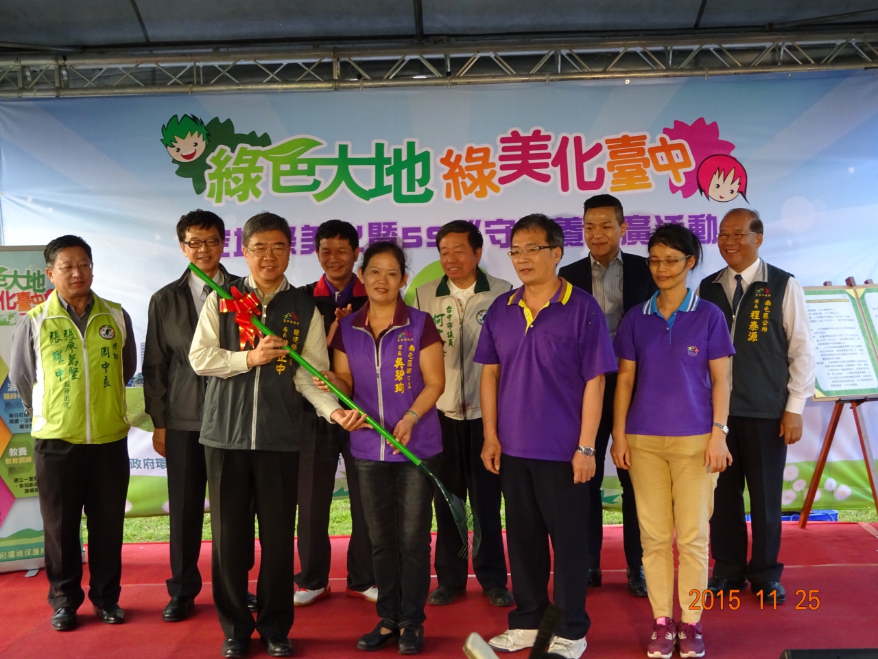 環保局長洪正中表示,推動「綠色大地-綠美化臺中」政策是藉由空地綠美化方式,達到提升環境品質的目的,同時也是基於「以人為本」精神,希望提供更多都市空間綠地及公共空間,讓民眾休閒遊憩使用。