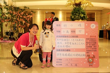 南台中家扶中心主任洪健胤則說,這個活動一開始只給台中家扶,但其實很多偏遠地區的家扶中心也有需要,因此後來擴及金門、澎湖等地,而今年共有全台包括台中、南投、花蓮、台東、澎湖、金門等10個家扶中心的孩子可望得到聖誕禮物;另外,由於馬祖家扶中心成立了,明年此活動會再擴及馬祖,讓愛傳遍每個角落。