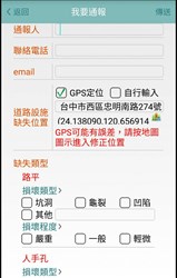 而建設局同仁在受理通報後,即至現場查驗,並以email通知民眾辦理情形;民眾也能夠使用「臺中好好行」APP,追蹤改善進度,隨時上網查詢處理狀況。民眾也能透過該應用程式中的「行動資訊」,點按下方的「1999」直撥市民專線,還能查詢相關連結和「我的通報」查詢最近10筆通報紀錄。(11/28*15)*建設局