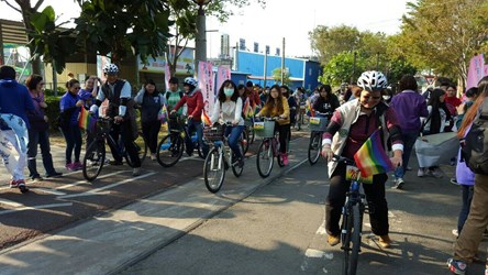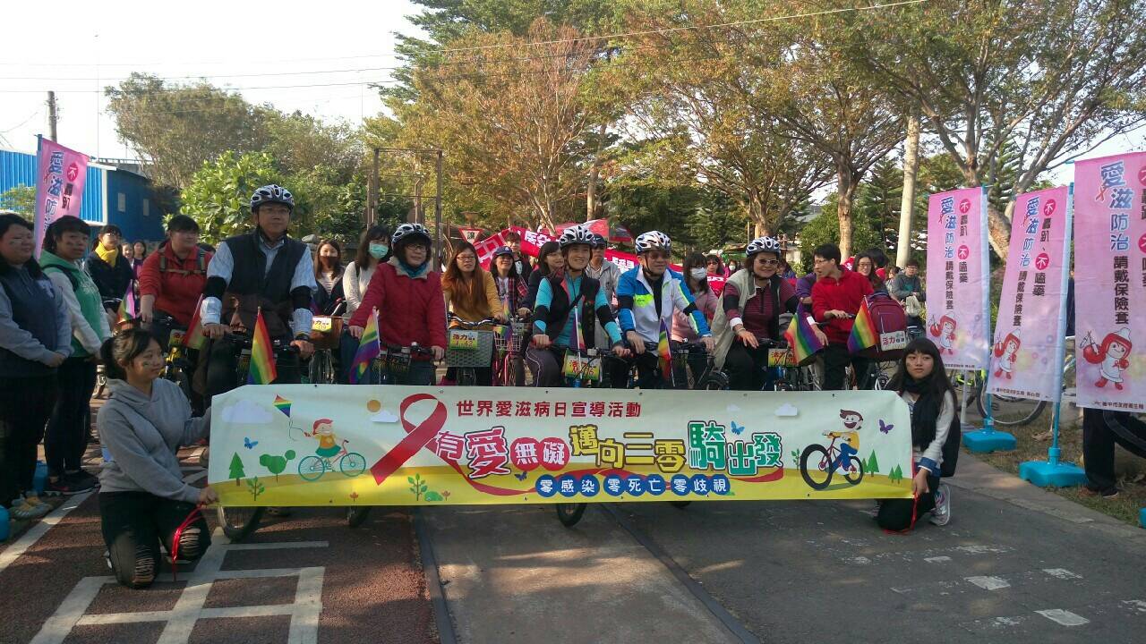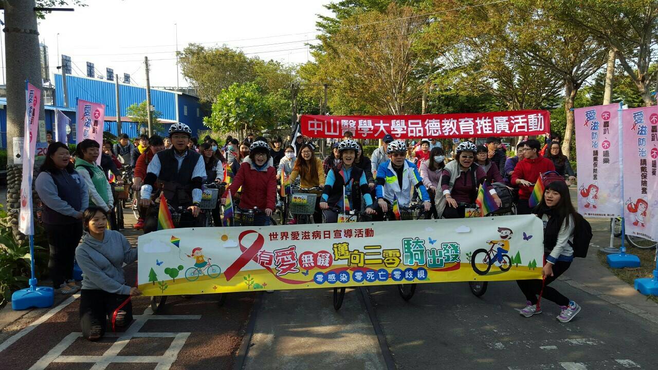 今天的宣導活動,結合NGO團體、社團機構、學校學生、社團等外,市府衛生局專門委員洪秀勳、衛生福利部疾病管制署科長賴珮芳、中山大學校長呂克桓及300為師生家屬參加,透過騎腳踏車方式,鼓勵民眾走出戶外,並營造健康關懷概念,共創有愛無礙的家園;此外,衛生局也現場表揚全市協助愛滋病防治的10家績優藥局。