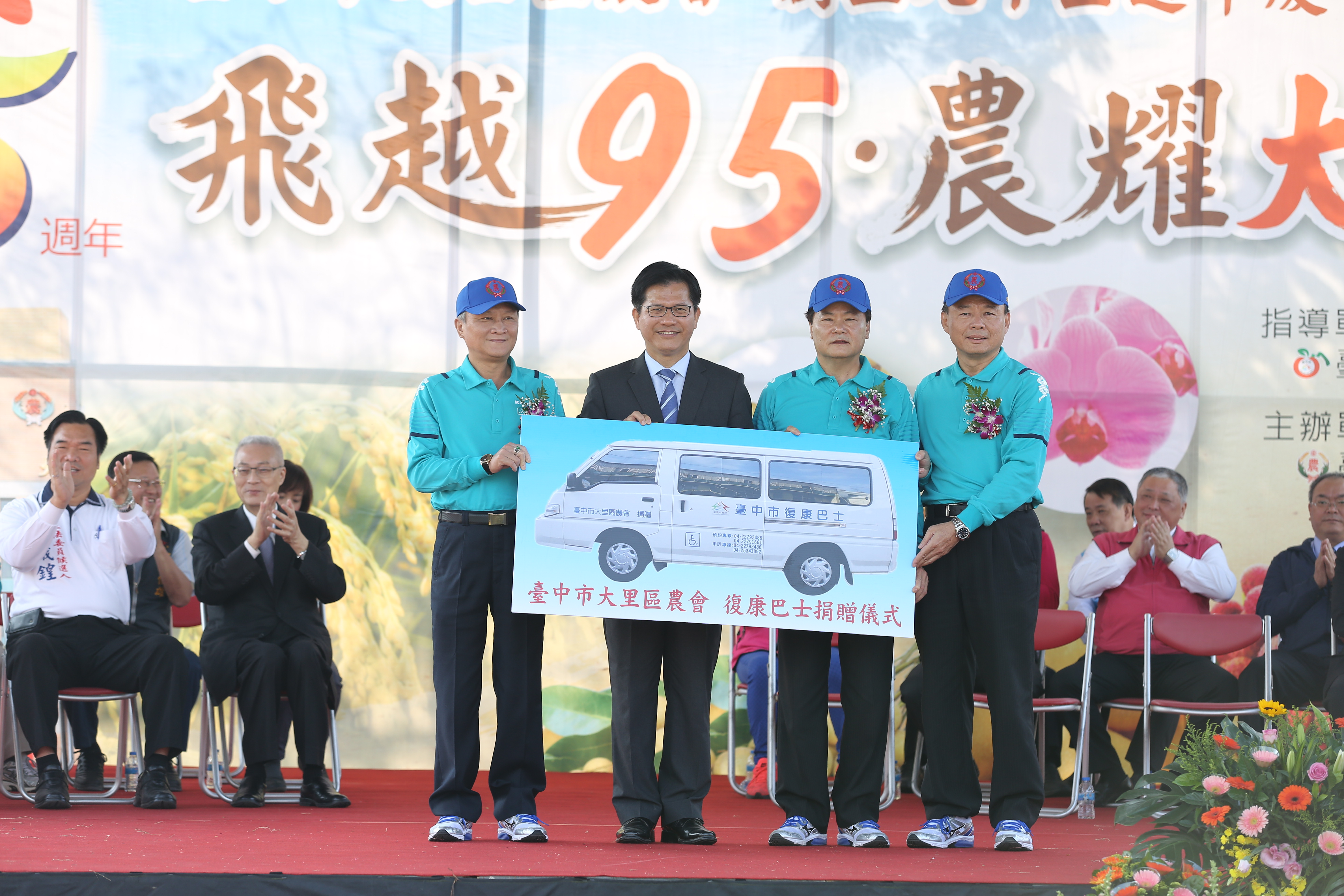 對於大里農會捐贈2輛復康巴士給市府,林市長大表感謝,稱讚大里農會是「模範農會」。他也說,市府期待與農會密切合作,辦好2018世界花博,讓台中成為花園城市。