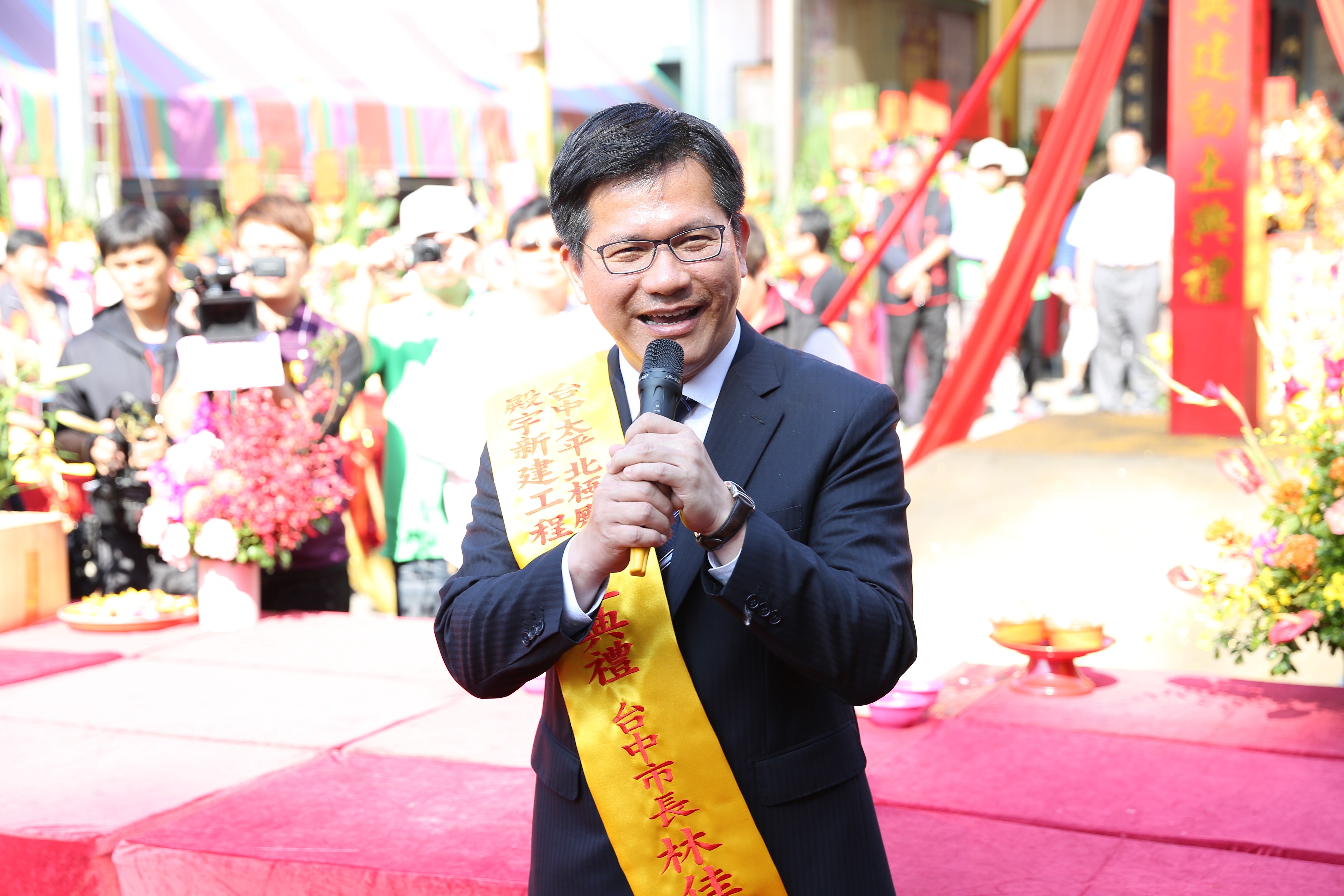 林市長表示,今年台灣燈會烏日主燈區中,北極殿贊助了100坪的特色燈組,讓燈會更加精彩;他也祈求玄天上帝保佑市府市政推動順利,讓台中市民更幸福。