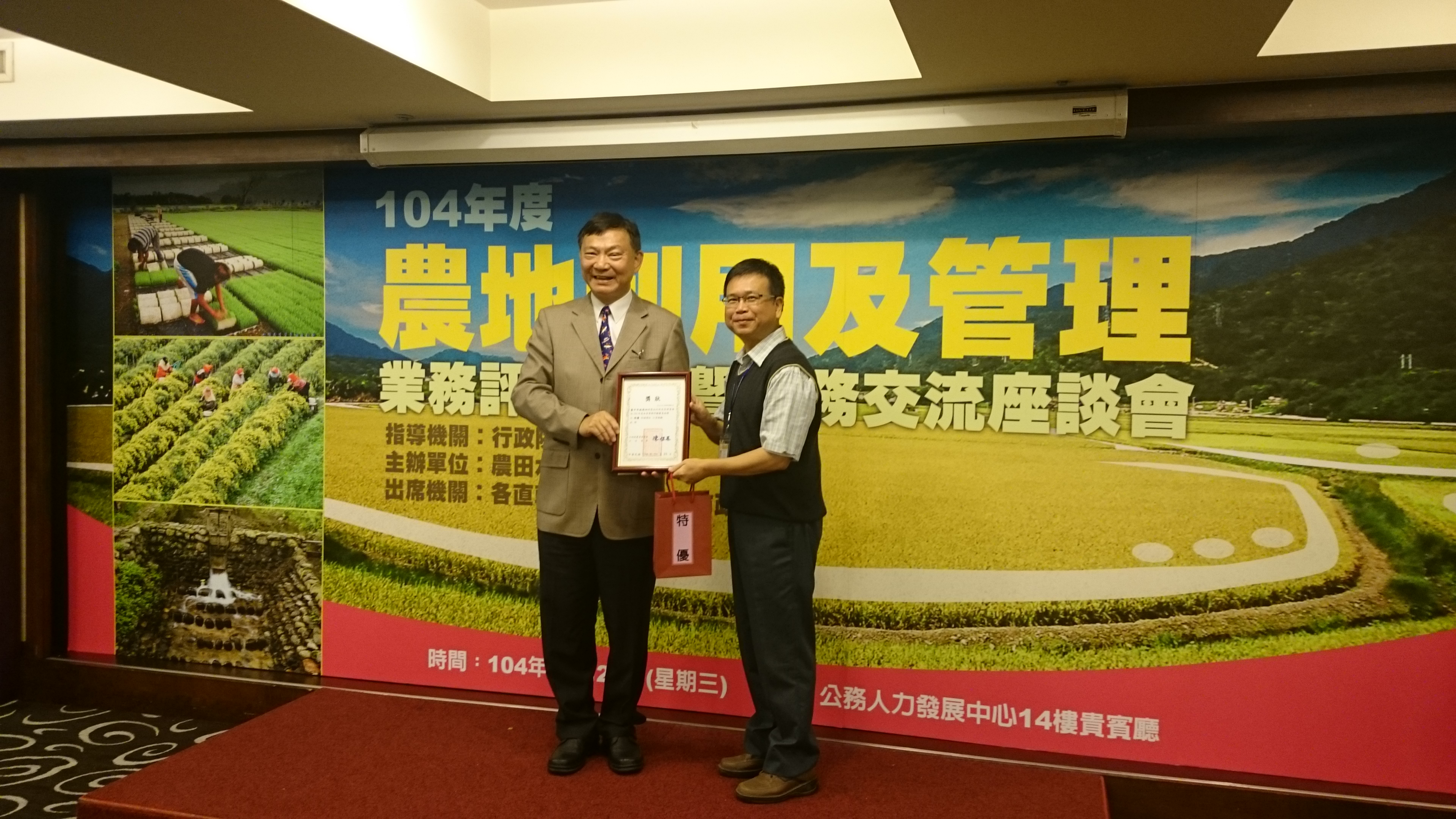 台中市政府農業局表示,這次評鑑為第二屆,評鑑範圍為103及104年的農地利用及管理業務,在全國縣市競爭激烈下,分別由台中市政府、台南市政府及宜蘭縣政府榮獲「特優」,台中市更已連續二屆獲得「特優」殊榮。