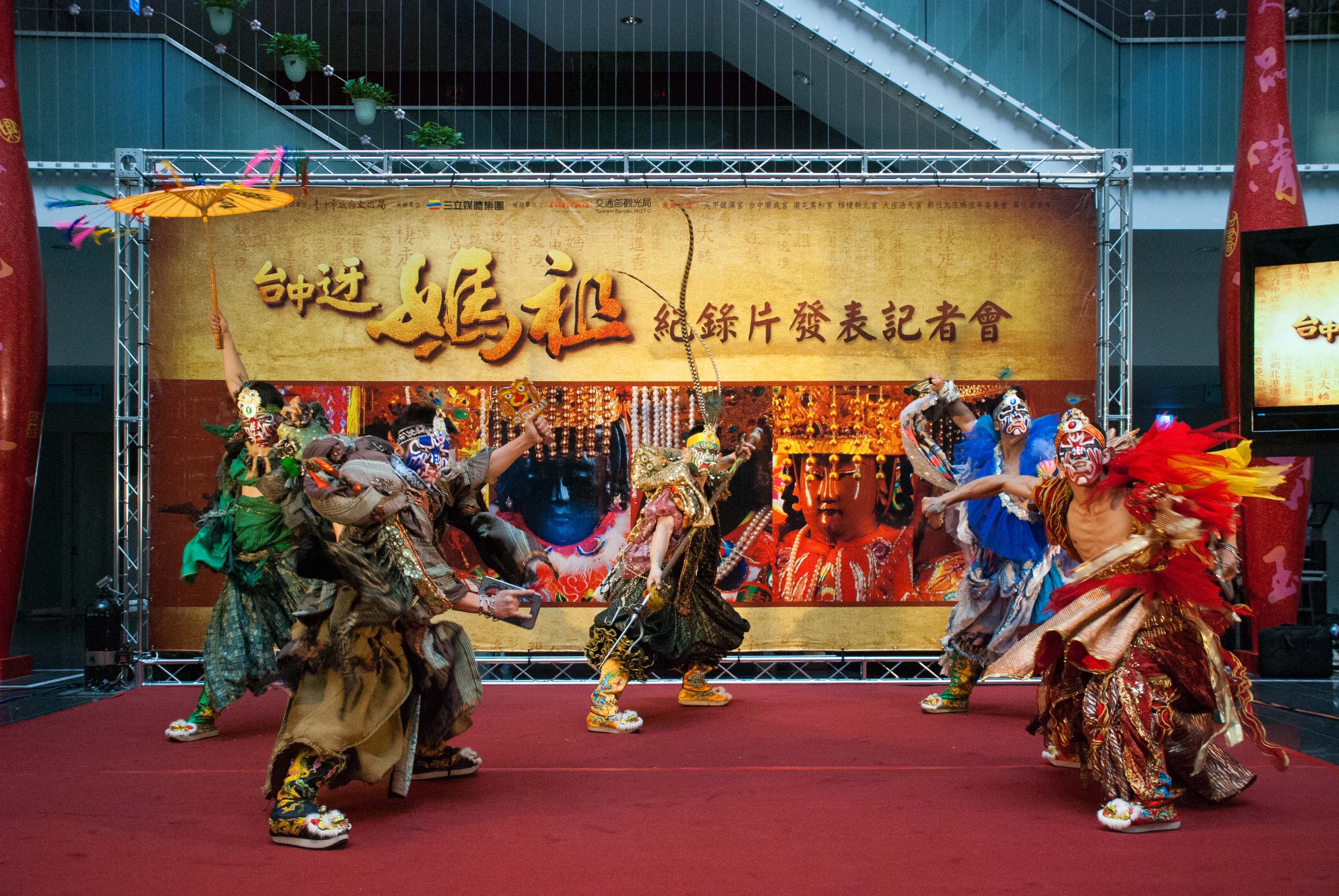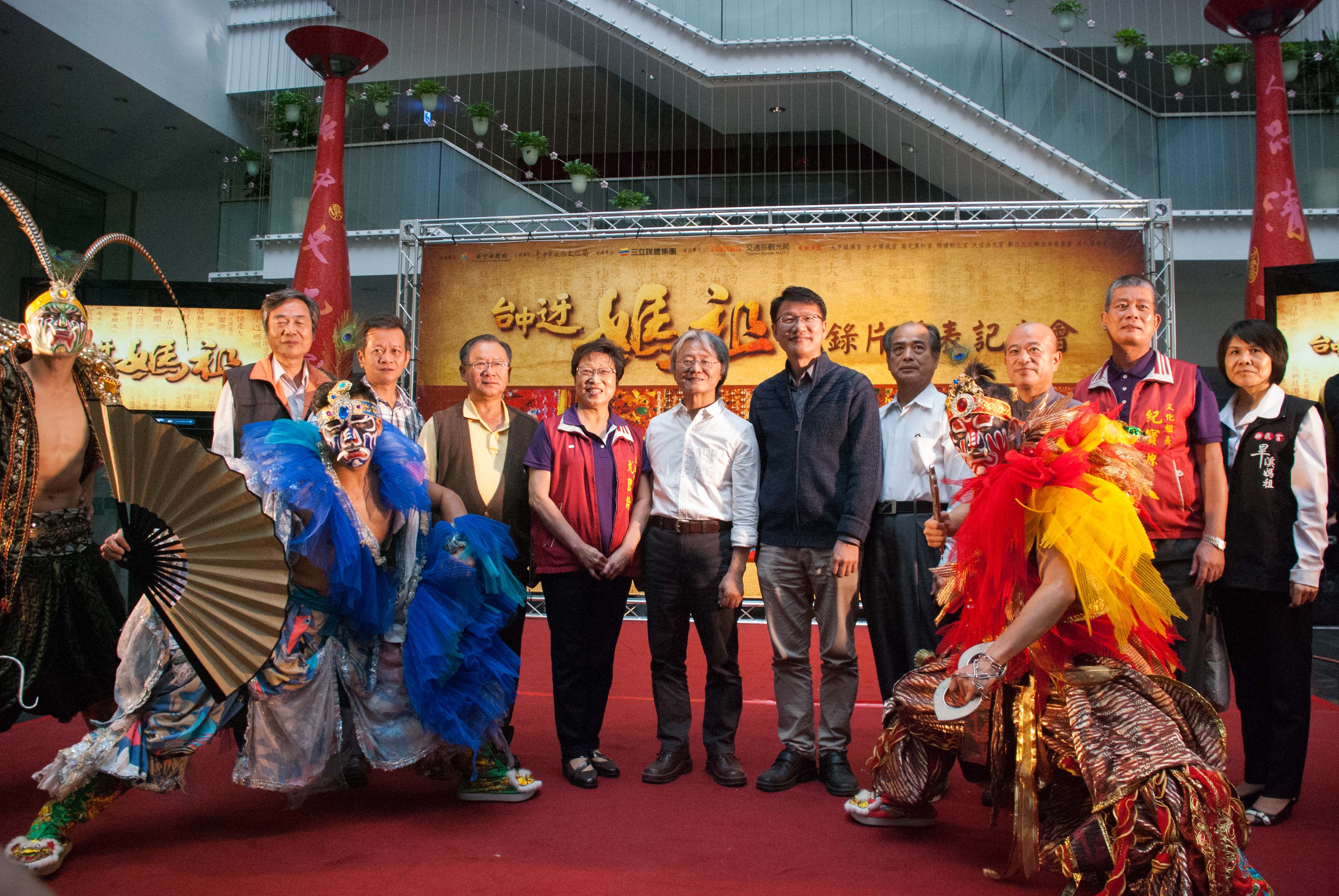 文化局今(3)日在台灣大道市政大樓舉辦「台中迓媽祖」紀錄片發表記者會,現場邀請台中表演團隊「慕璇舞蹈團」與表演藝術團體「藝想劇團」,跨領域組合發揮創意巧思,以傳統廟會陣頭「官將首」與「八家將」為基礎,用時尚炫麗的服裝,帶來精采絕倫的「舞神將」演出,現場並播放「台中迓媽祖」剪輯,市長夫人廖婉如、文化局長王志誠、市議員王立任、尤碧鈴等人皆到場觀賞。