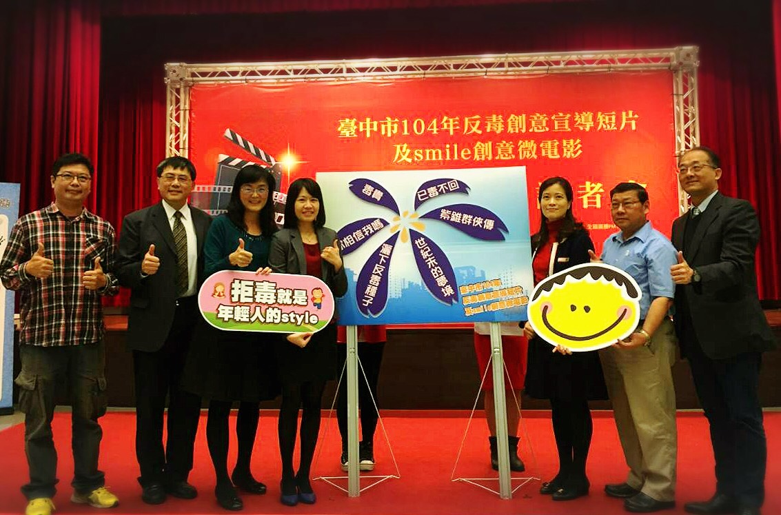 為提升民眾對心理健康促進的重視,了解接觸毒品的嚴重性進而遠離毒品,衛生局今年首次舉辦「台中市104年反毒創意宣導短片及smile創意微電影徵選活動」,自8月21日起至10月30日徵選創意影片,更邀請到知名電影《少年Pi的奇幻漂流》台灣藝術操偶師、業界影音展覽策展人及廣播人擔任評審,希望透過年輕族群的視野,拍攝兼具創意、活潑與詼諧的宣導短片。