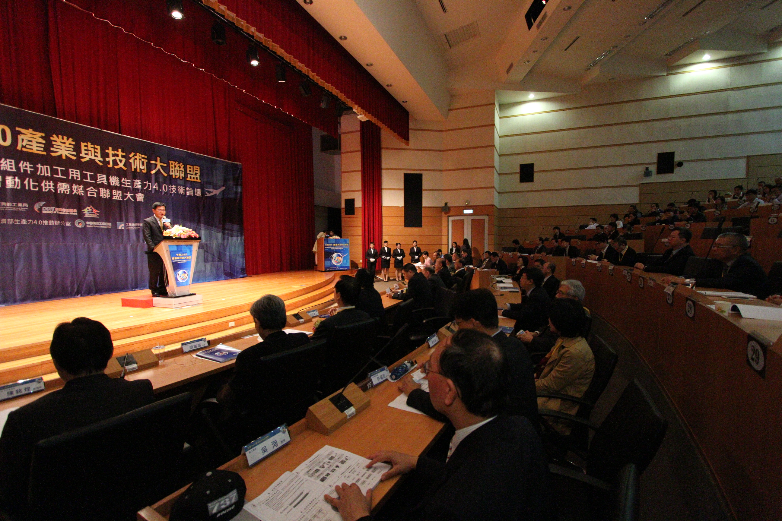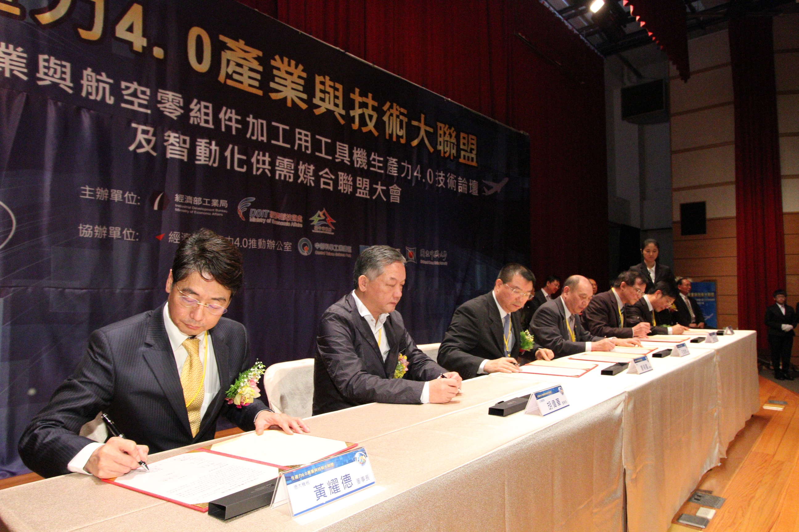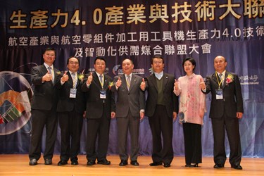 今天會中國內航空製造業者漢翔、長榮航宇、中興電工等上百家供應鏈籌組航太聯盟A Team(Aerospace Team),藉由工研院機械所和工具機中心技術研發團隊I Team(Intelligence Team),鏈結上銀科技、台中精機、永進、台灣麗馳、德大機械、中衛發展中心及百德機械等工具機與零組件廠商所組合的M Team(Machine Team),共同簽約結合成A-I-M航太工具機產業技術大聯盟,下午並有數十家產業界及研究機構進行生產力4.0技術發表(I-Team)及智慧自動化供需媒合,現場計有近三百人來自國內外產官學界參與,場面盛大。