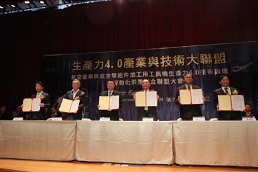 由台中市政府與經濟部共同主辦「生產力4.0產業與技術大聯盟及產業4.0論壇」今(10)日在中興大學國際會議廳舉辦,由國內航太產業A Team(Aerospace Team)、經濟部技術研發團隊I Team(Intelligence Team)及機械產業M Team(Machine Team)簽約共同組成A-I-M航太工具機產業技術大聯盟,藉由生產力4.0技術,搶攻全球5.2兆美元的航空市場。市長林佳龍表示,台中可說是台灣製造業最重要的基地,擁有精良的製造業的產業聚落,A-I-M大聯盟瞄準航空產業這塊具有潛力但仍有待努力的領域,將對台灣產生帶領功能。