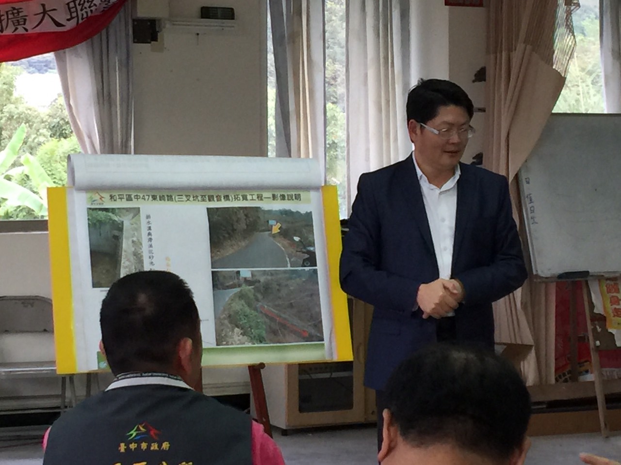 和平區長林建堂說,市府在12月4日已先將東崎路一、二段約16公里的山溝清通,如今更進行中47線東崎路拓寬工程,打造東崎路成為首條山區示範道路,地方居民皆感到興奮期待。他也與黃局長約定,若工程順利,明年的此時再一起慶祝。(12/11*7)*建設局