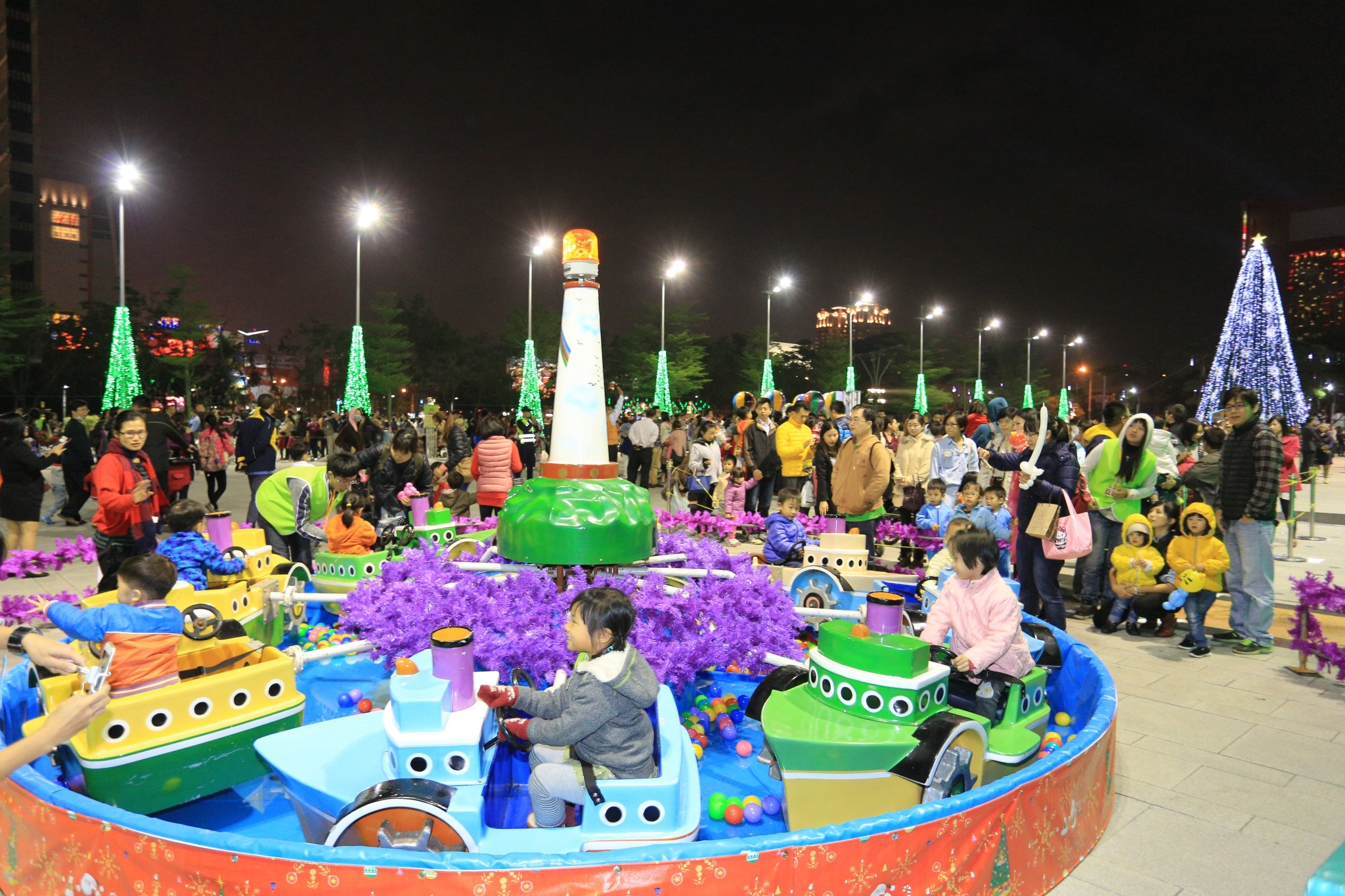 市府新聞局表示,這是歷年耶誕節活動首次以兒童樂園的形式呈現,活動現場包括18公尺高的LED耶誕樹、薑餅屋、環保雪人,以及熱氣球、旋轉木馬、小火車、旋轉小船及旋轉咖啡杯等五台大型遊樂設施,可望讓大小朋友玩得開心。