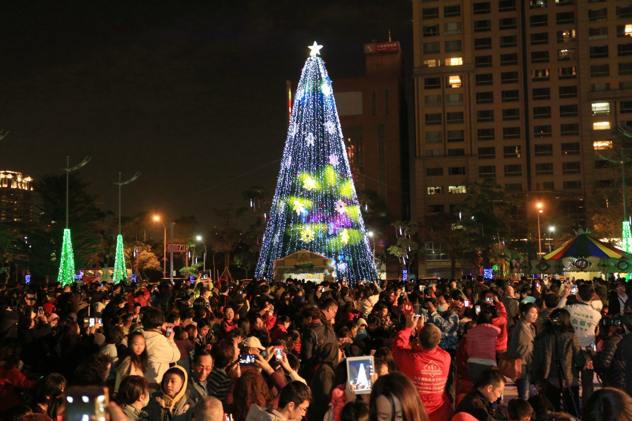 「夢幻耶誕樂園」今晚由林市長與市議員邱素貞、劉士州、張耀中、副市長潘文忠、張光瑤等市府首長們,與現場民眾一同合唱「平安夜」後倒數啟用,在啟用前各項遊樂設已經吸引許多家長帶著小朋友排隊,讓整個市府廣場前充滿著溫馨又興奮的氣氛。