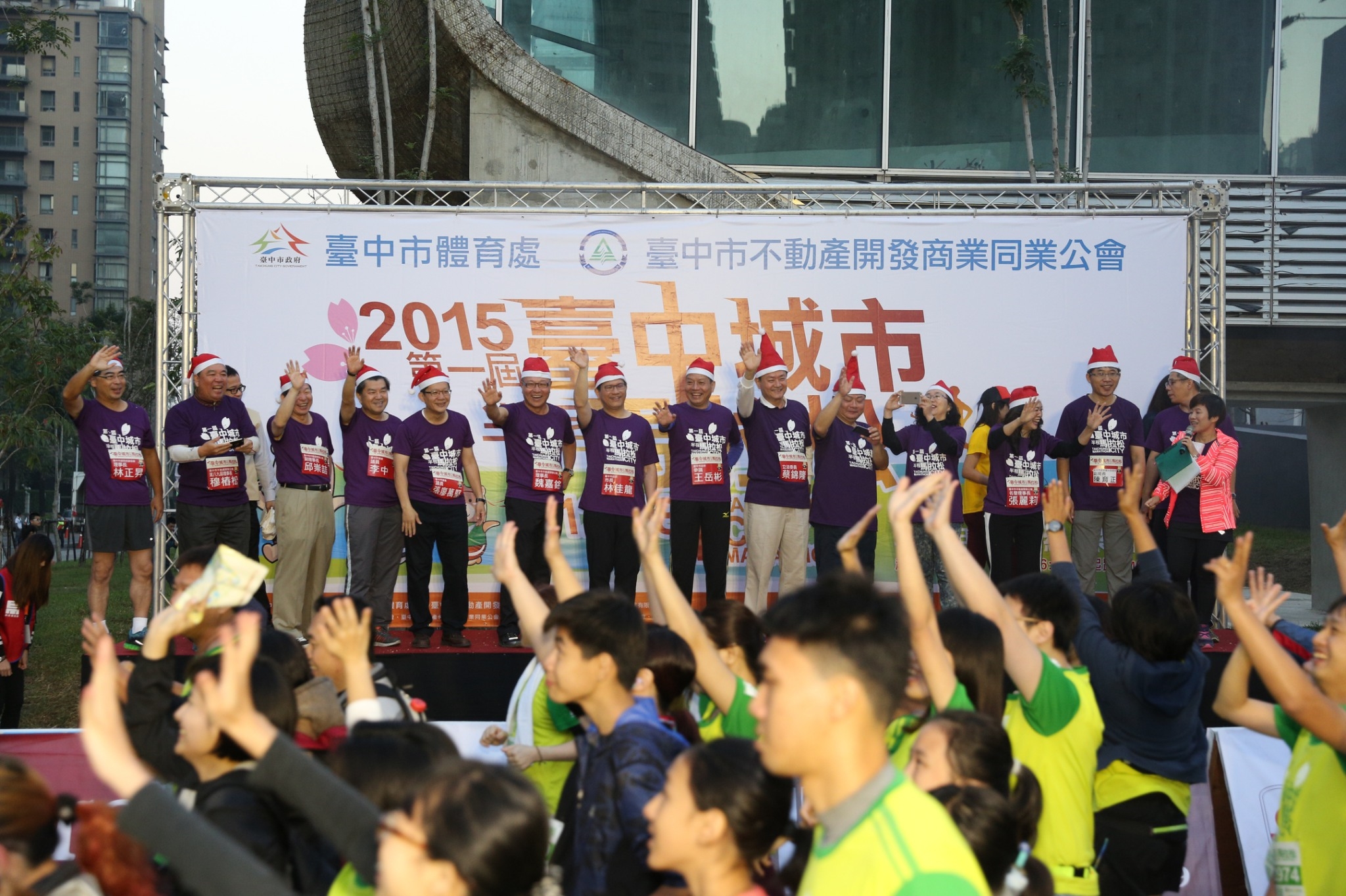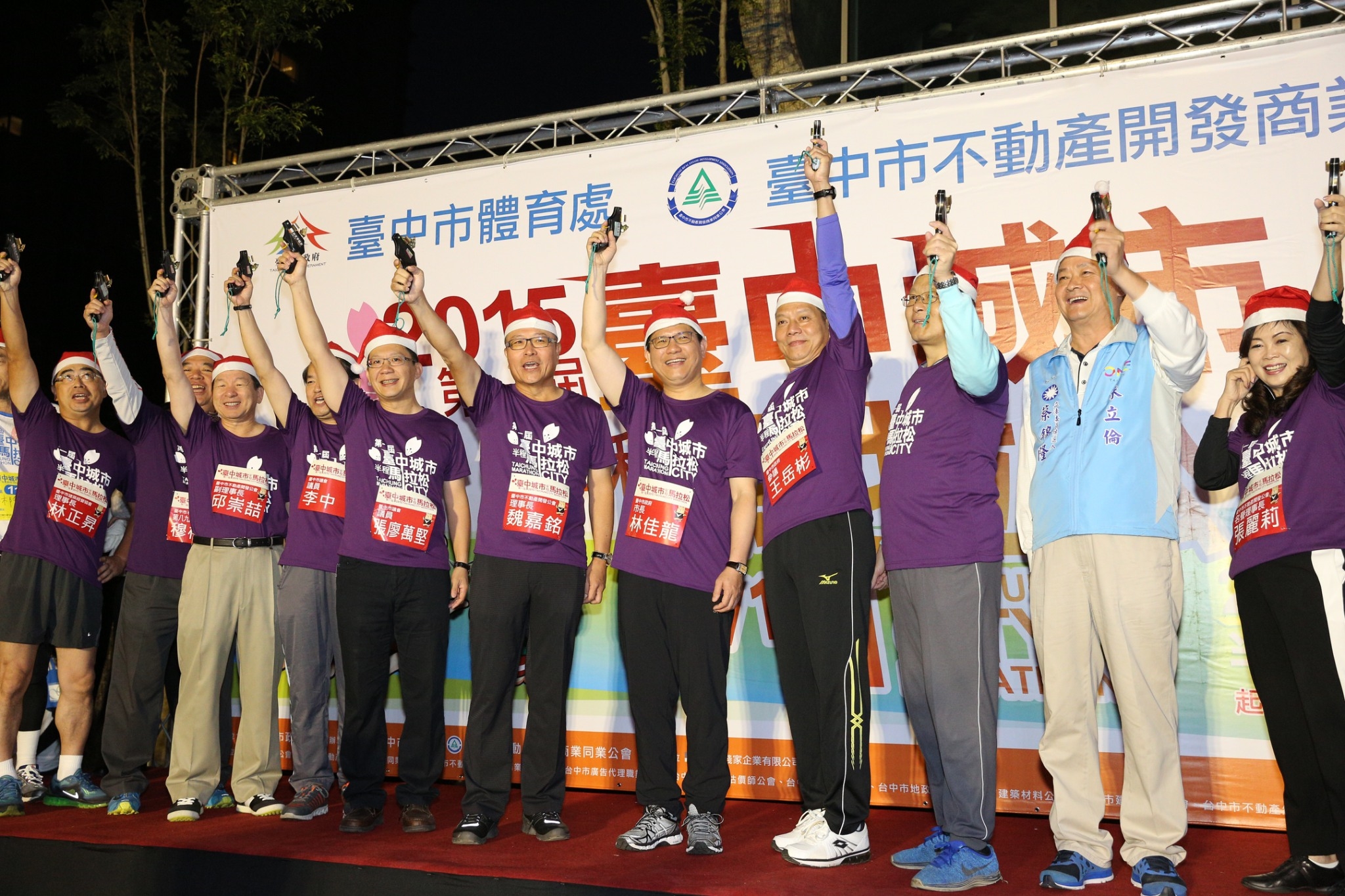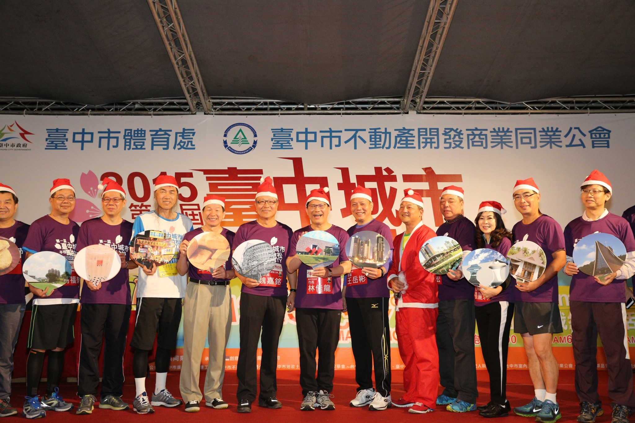 台中市長林佳龍、行政院政務委員蕭家淇、立法委員蔡錦隆、市議員李中、張廖萬堅、都發局長王俊傑、觀光旅遊局副局長陳育正、參議王岳彬、體育處長郭明洲、台中市不動產開發商業同業公會理事長魏嘉銘以及多位建築公會代表,都在天未亮時到場,為活動嗚槍起跑;由於耶誕佳節將至,也有選手扮成聖誕老公公跑馬拉松,增添節慶氣氛。