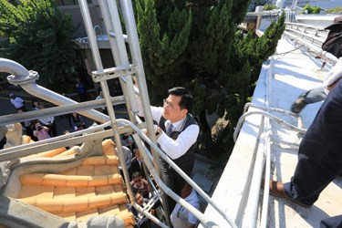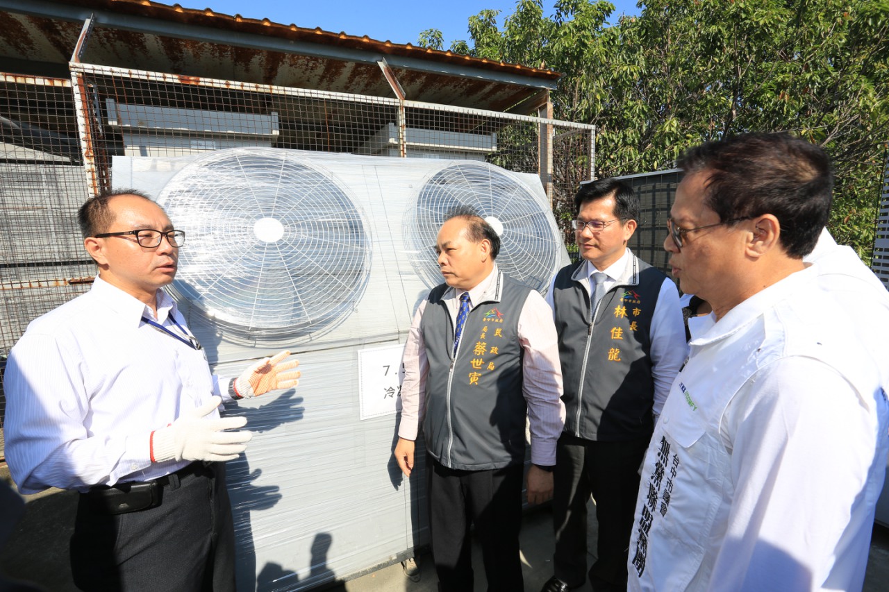 林市長今天在市議員張立傑、張滄沂、尤碧鈴、民政局長蔡世寅、主計處長蔣建中、台中市生命禮儀管理所長賴榮裕以及政風人員的陪同下,前往崇德殯儀館瞭解冷凍工程招標以及財產管理的實際情形。