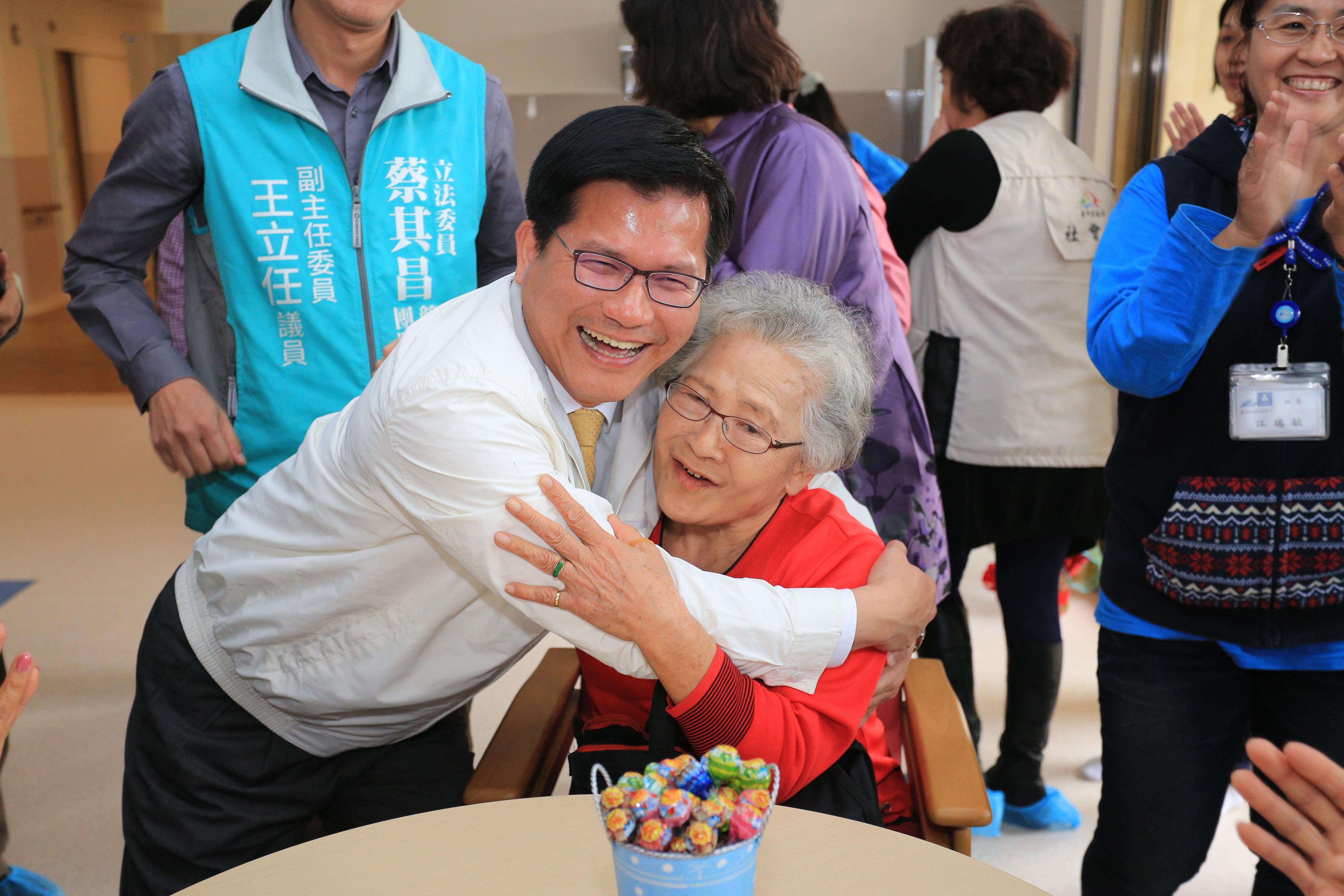 林市長說,海線社區照顧服務中心原為台中縣清水鎮老人安養中心,後來因營運不佳成為閒置空間,經市府重新修復後開館,為長輩們提供良好照顧,看到這邊的長輩們都笑呵呵,他也感到開心。