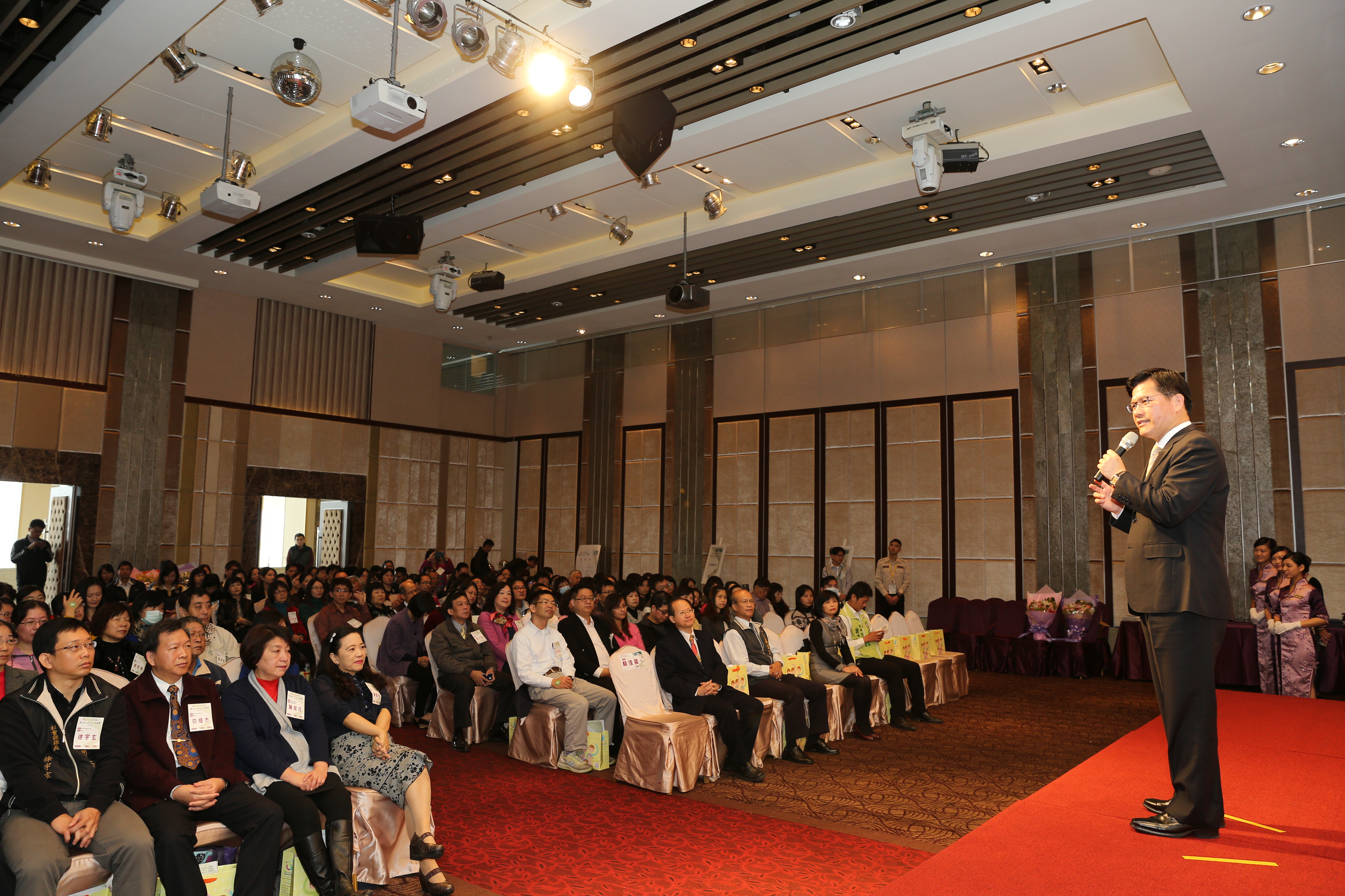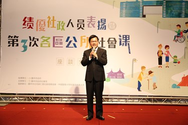 林市長表示,上任後,他推動許多社會福利政策,包括托育一條龍育兒補助、老人免費裝假牙、食物銀行、愛鄰守護隊等,但市長只有一人,無法親自服務每位市民,必須仰賴市府及區公所第一線服務人員,因此他很感謝社政人員的付出與辛勞。
