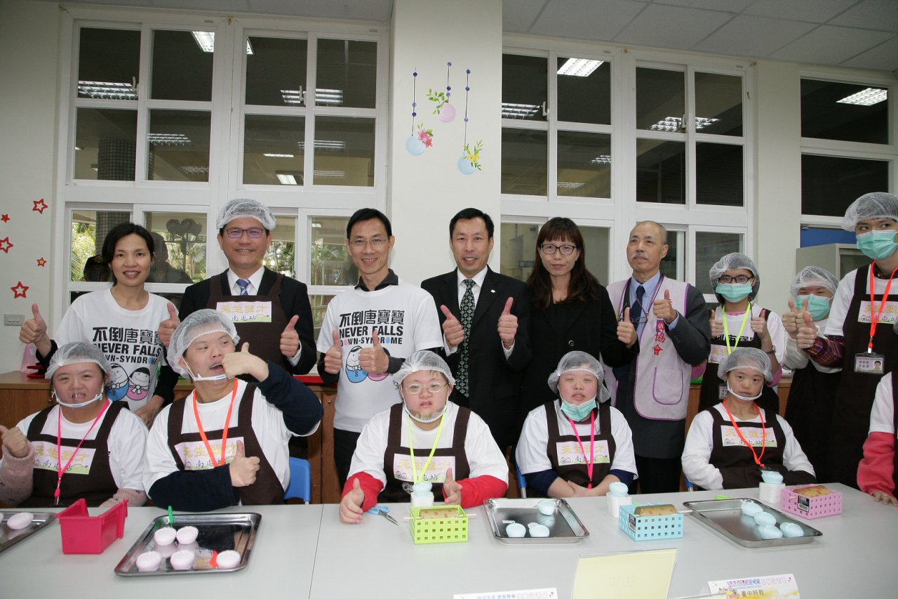 「一枝草,一點露!」林市長表示,為幫助身心障礙朋友能自力更生,減輕其家庭負擔,除了市府投入更多資源外,也需要各界一起努力,感謝唐氏症基金會的大力推動及國立台中特殊教育學校熱心提供校內資源大樓的2間教室,讓身心障礙朋友在此快樂學習,找到生命的出口及尊嚴。