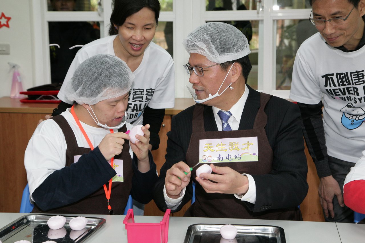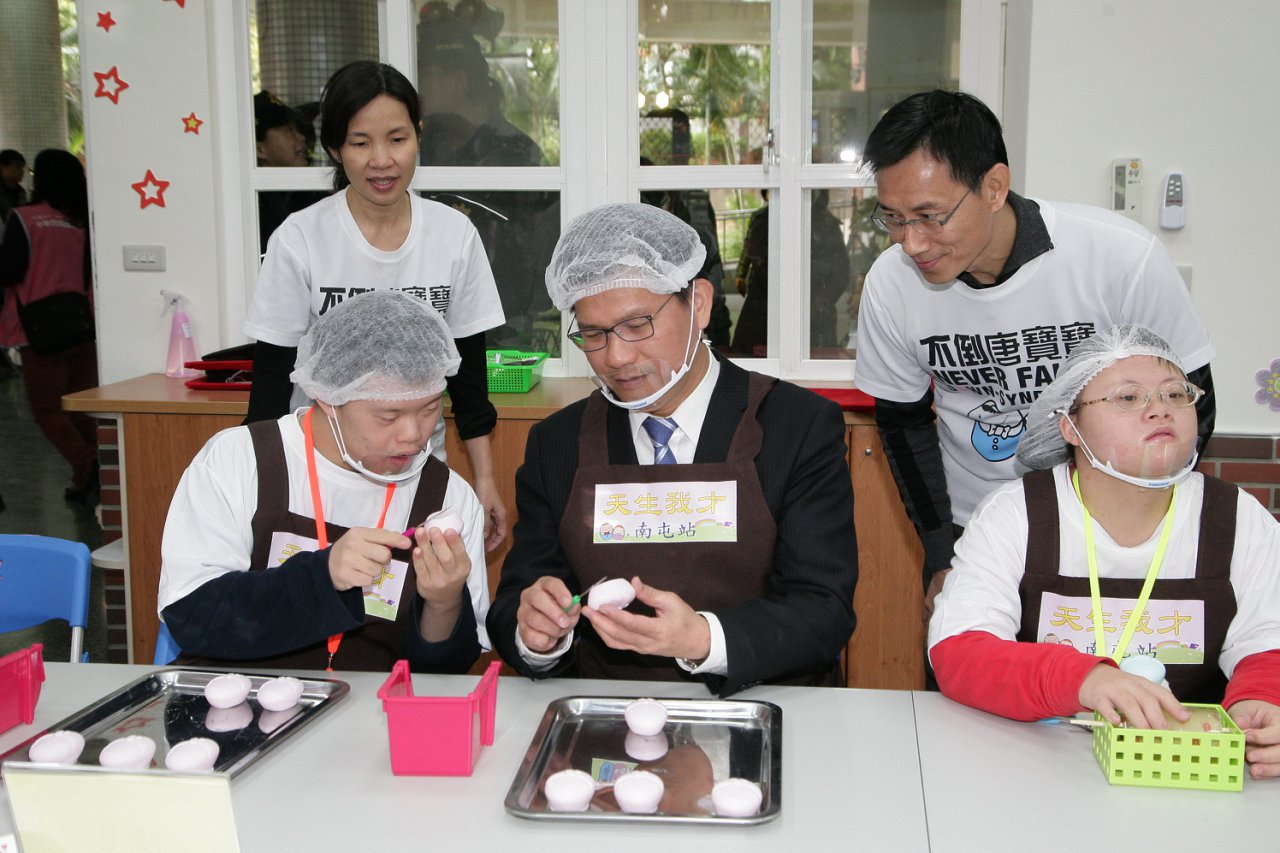 為讓無法進入庇護性就業服務場所的身心障礙者有更多工作表現,台中市政府、國立台中特殊教育學校及唐氏症基金會合作,成立第一家進駐特教學校的社區日間作業設施「天生我才台中南屯站」,同時也是台中市第9間社區日間作業設施,總計可服務180個身心障礙家庭。市長林佳龍表示,明年市府將投入更多資源,拓展日間作業設施至14間,給身心障礙朋友更多機會與照顧,打造台中成為充滿愛與希望的友善城市。