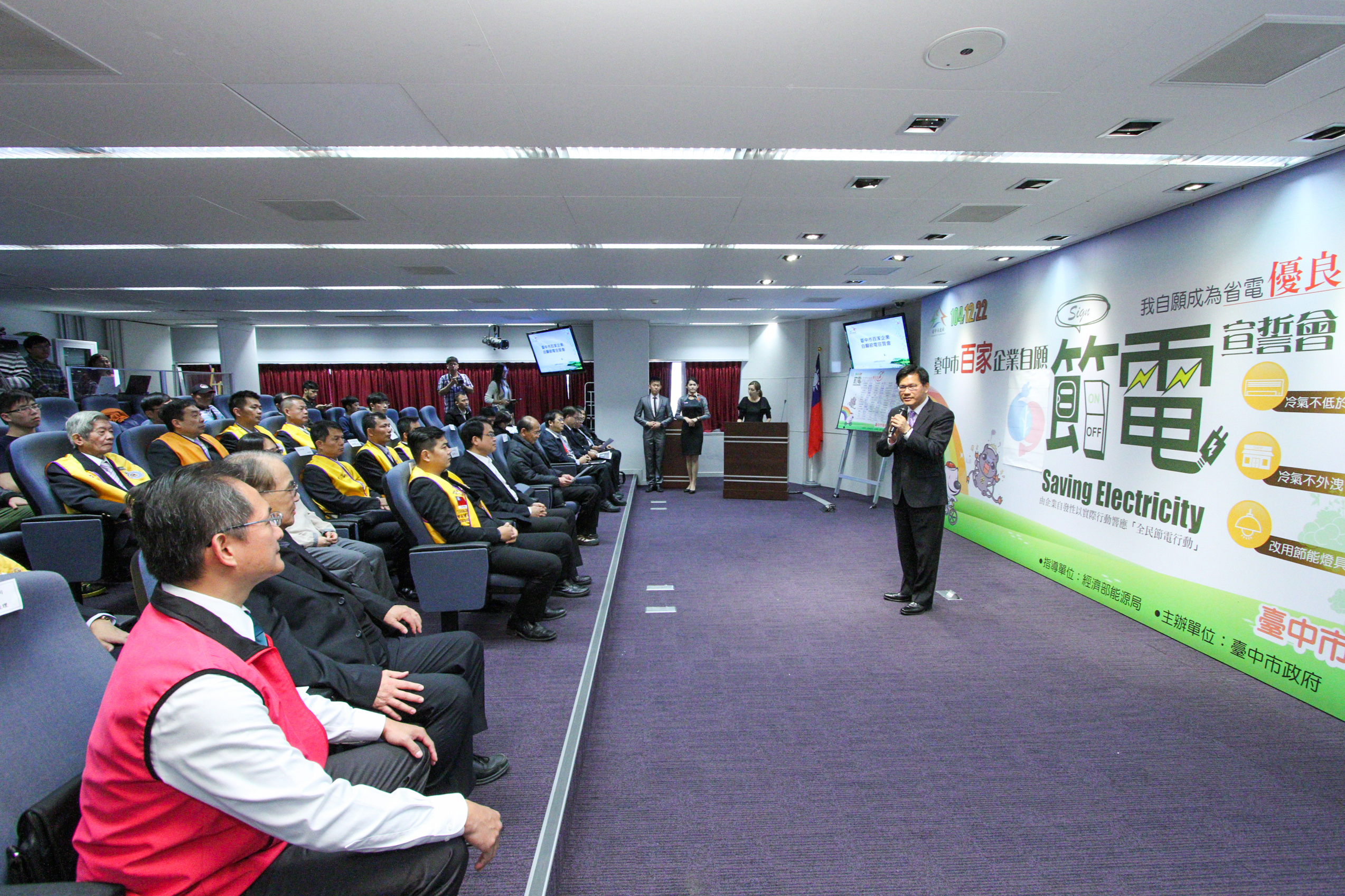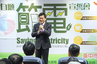 台中市政府全力推動智慧節電計畫,並已向中央爭取到近1.5億元補助,汰換公共場所老舊燈具、冷氣等;為配合市府計畫,台中100多家企業也宣誓自願節電,期望為環境盡一份心力。「將台中打造為宜居的生活首都,從自身做起!」市長林佳龍表示,透過全民參與節電將能發揮更大效果,期望大家一起為我們的下一代保留永續發展的環境。