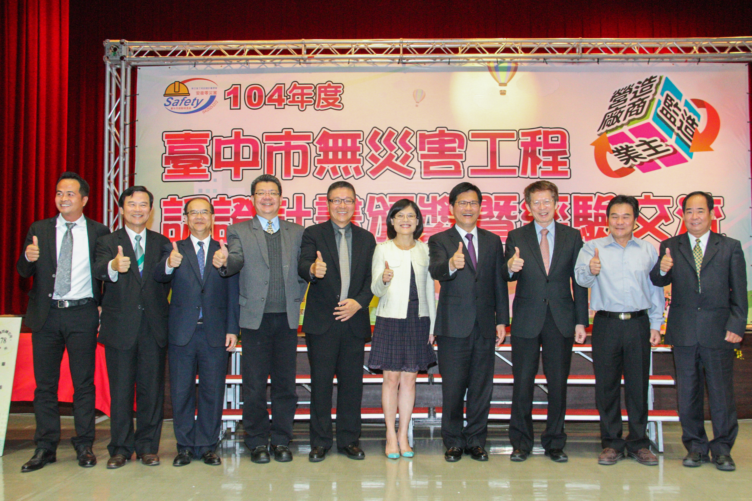 市長林佳龍頒發獎項鼓勵得獎廠商,他指出,營造業是都市發展的火車頭,帶動經濟產值及就業機會,但工安事件中,營造業佔全行業比重的50%,市府相當重視此現象,已向行政院爭取增加勞動檢查人力,以提升勞動檢查覆蓋率,希望進一步提升工安。