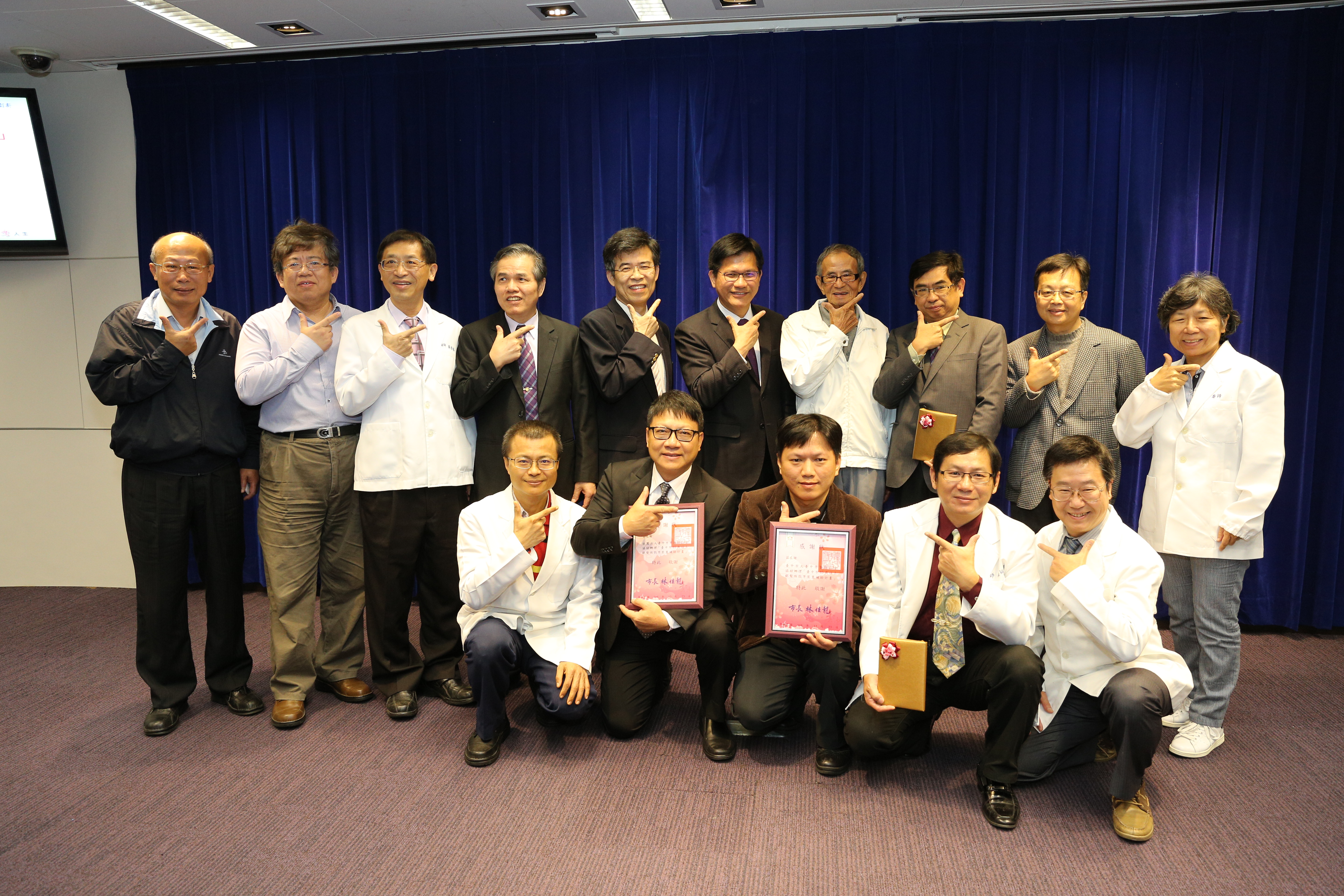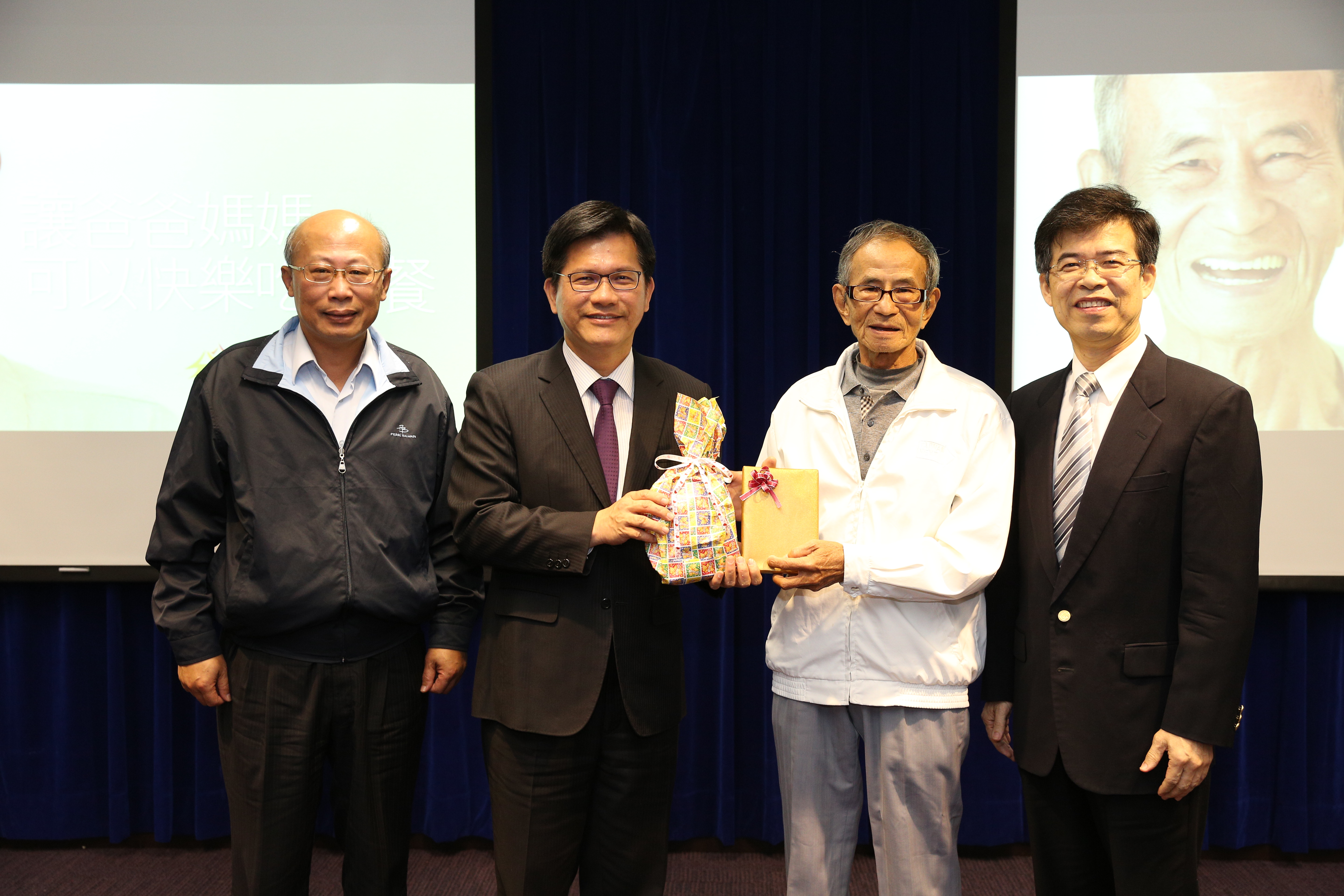 市府衛生局今(23)日舉行「今年冬天呷幸福」宣導短片首映會,向民眾宣布今年度的假牙補助成果,並邀請接受假牙補助的長輩分享裝設假牙後,對日常生活的幫助及改變;此外,為感謝台中市大台中牙醫師公會及社團法人台中市牙醫師公會的牙醫師們,熱心協助市府執行銀髮族免費裝置假牙政策,由林市長代表市民頒發感謝狀表達感激之意。