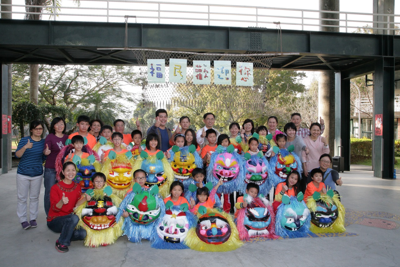 接著市長夫人轉往福民國小視察,一下車就受到學校以融合中西音樂的福民獅舞熱烈歡迎,氣氛活潑熱鬧。市長夫人也致贈加菜金,希望在歲末年終之際,讓小朋友能吃得更豐盛;福民國小校長陳厚仁也回贈小朋友們親手捏製的陶藝作品「孔雀開屏」,祝福市長及市長夫人事事如意。
