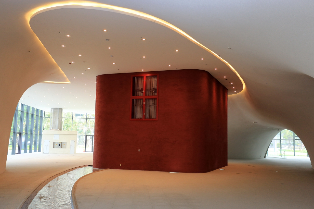 行政院公共工程委員會副主委顏久榮日前率領各單位約50多人抵達台中國家歌劇院取經,看到像是不規則洞口的曲牆,大家都忍不住拿起手機拍個不停。對於這座世界首創的曲牆,如何建造、搭接及灌漿,每一片曲牆的厚度多少、如何上漆塗料等等細節,都興致勃勃地詢問。