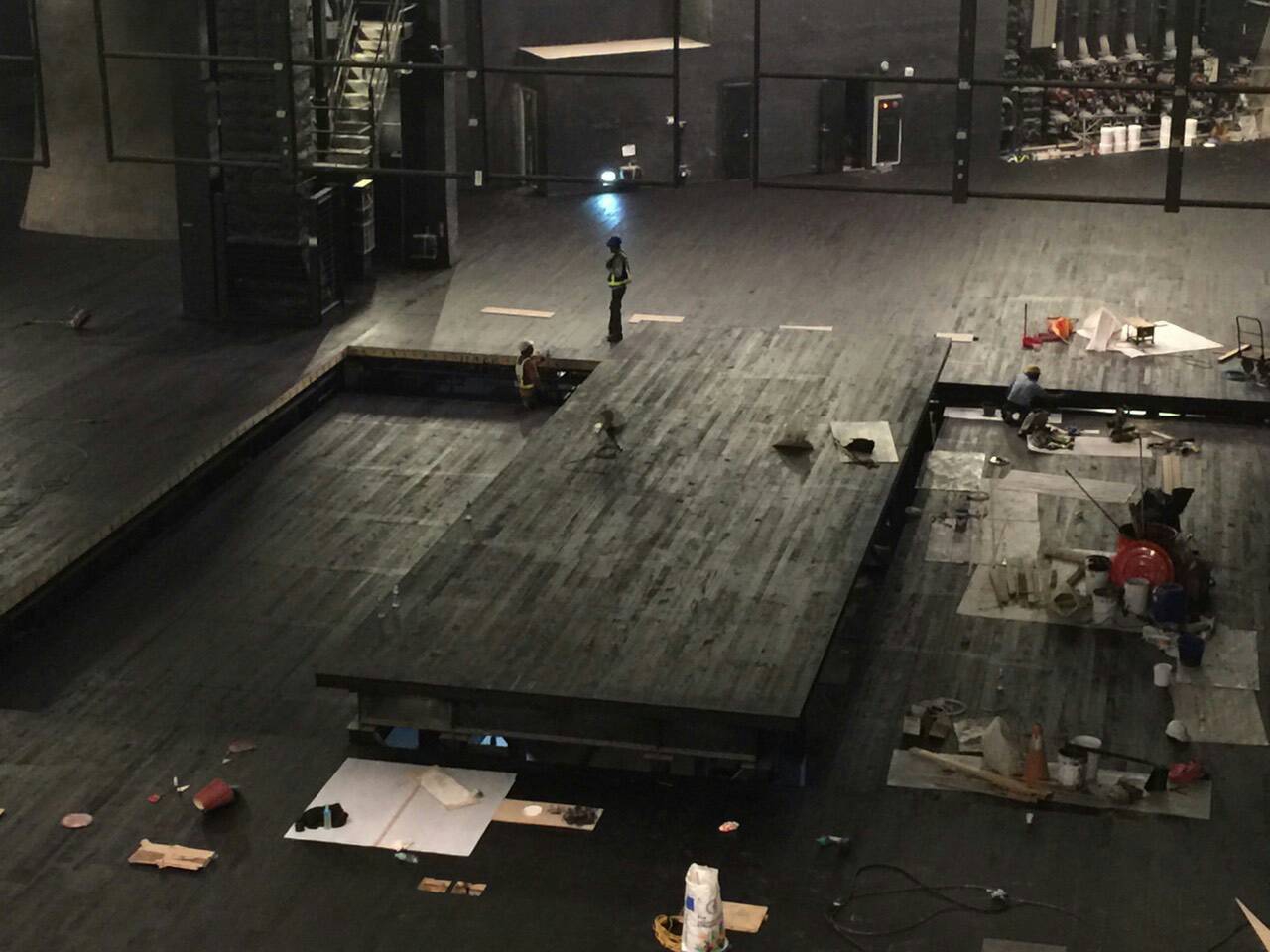 大劇院舞台自11月份起重鋪舞台木地板,中央舞台使用15公尺乘以15公尺的奧勒岡木,由三面各為5公尺乘以15公尺的平台併接而成;而三面舞台將以鍊條驅動方式進行升降,最長可以拉到17.5公尺高。建設局表示,這是全台之冠,特殊設計也相當少見。