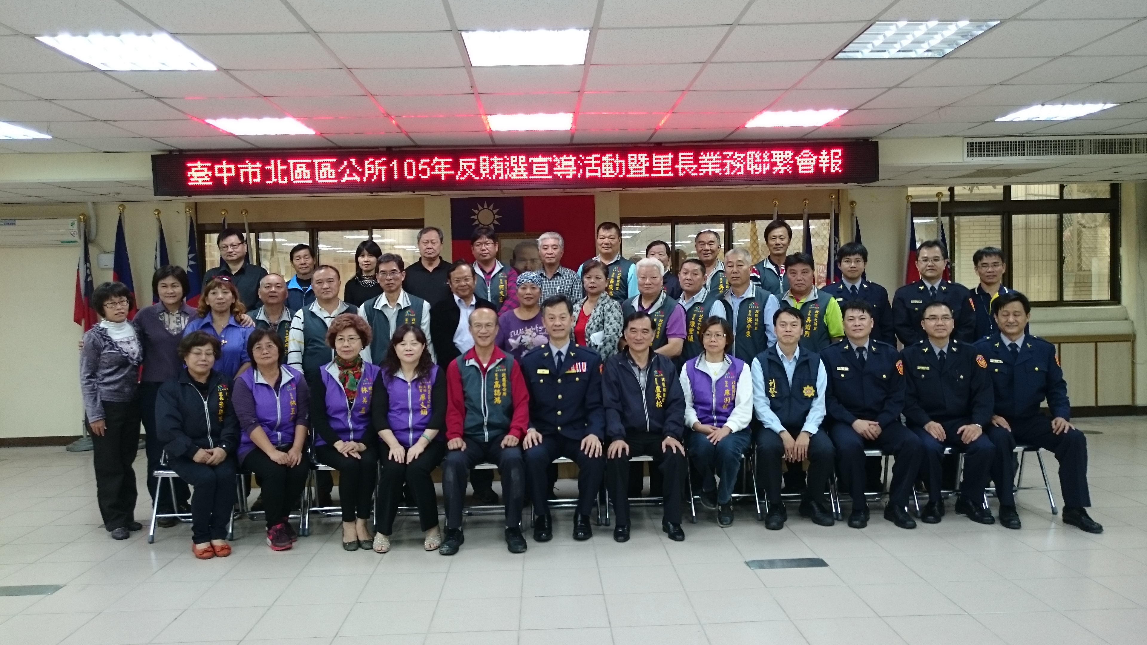 為宣揚乾淨、公平的選舉觀念,台中市北區公所與台中市政府警察局第二分局今(5)日於舉辦「台中市北區105年度反賄選宣導活動暨里長業務聯繫會報」,號召當地里長、里幹事及轄區員警等計100人參加,北區區長高誌鴻及第二分局長陳武康分別說明常見賄選案例及檢舉賄選方式,希望藉由地方基層的協助,將反賄選觀念落實到每一家戶。