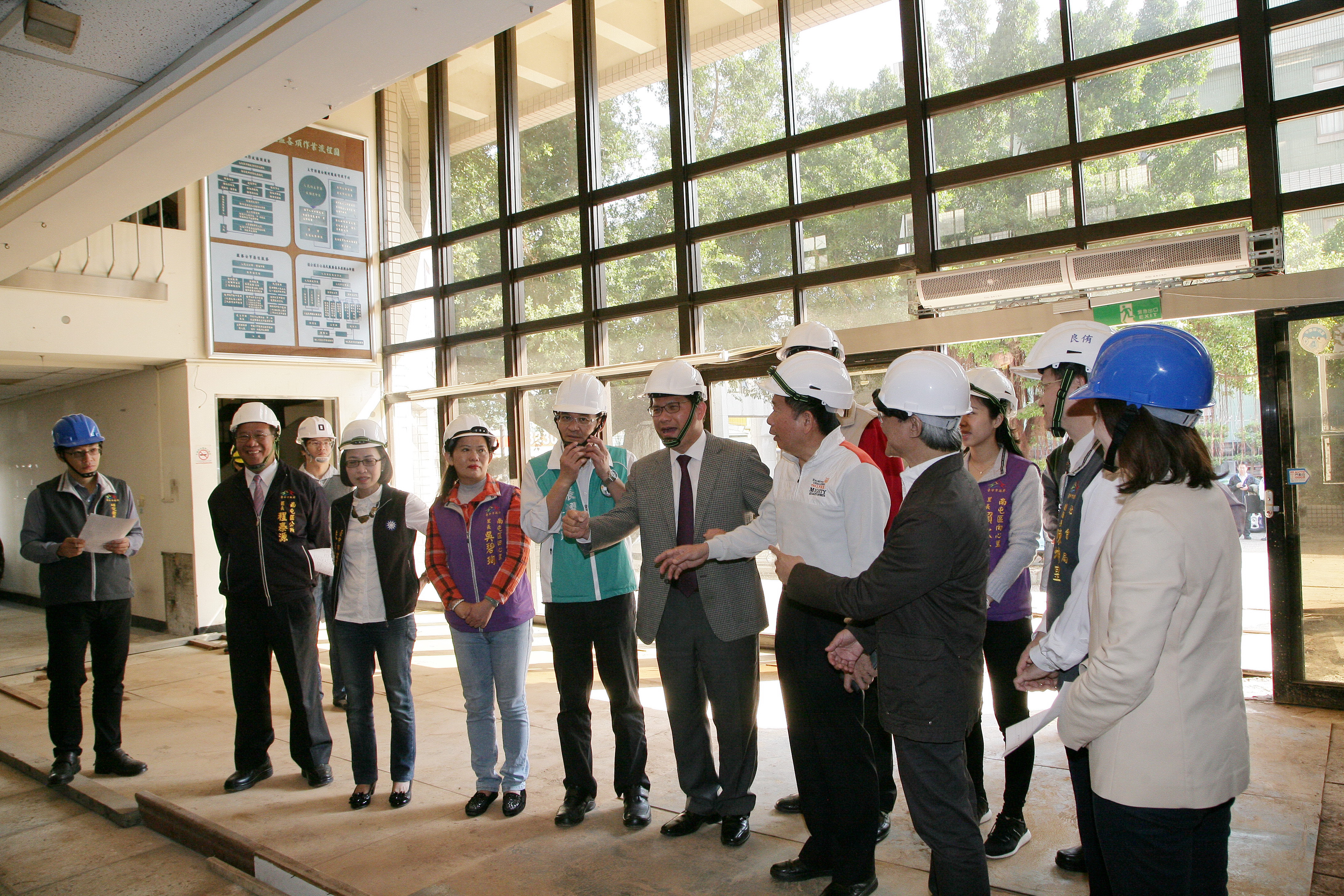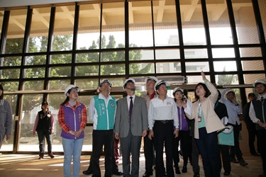 林市長今日在文化局長王志誠、社會局副局長陳坤皇陪同下,特別前往了解進度;市議員張耀中、朱暖英、何文海、南屯區長程泰源及當地里長等人也到場關切。